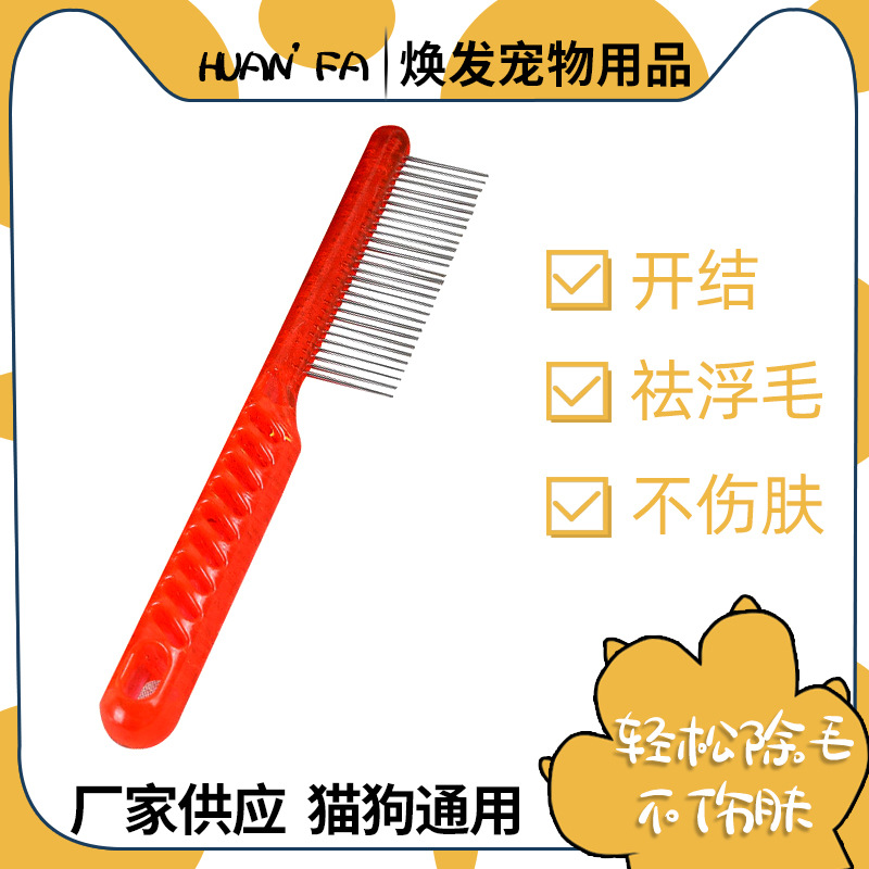 공장 도매 미끄럼 방지 플라스틱 손잡이 스테인레스 이빨 애완 개 빗 긴 머리 개 고양이 미용 오픈 매듭 빗