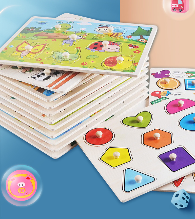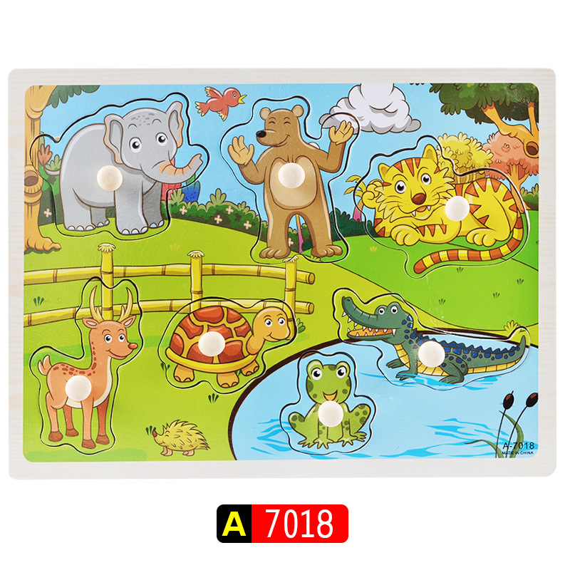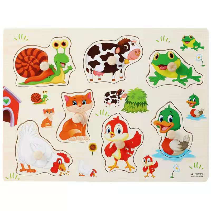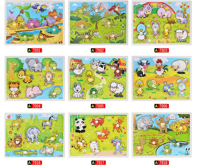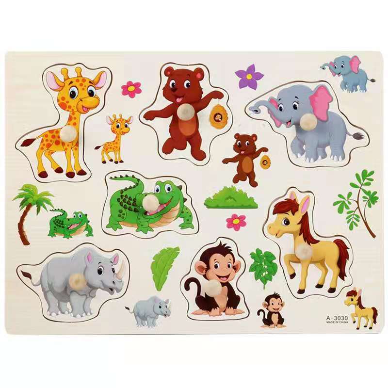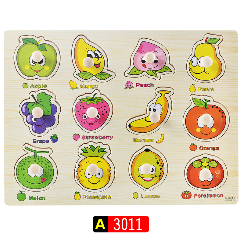 나무 어린이 손잡이 보드, 과일 및 동물 입체 교육 퍼즐 블록 장난감, 아기 인지 조기 교육 장난감스토어 가기