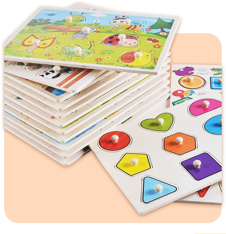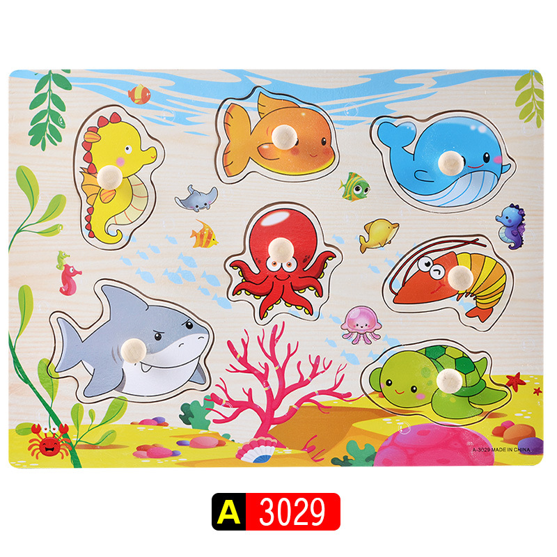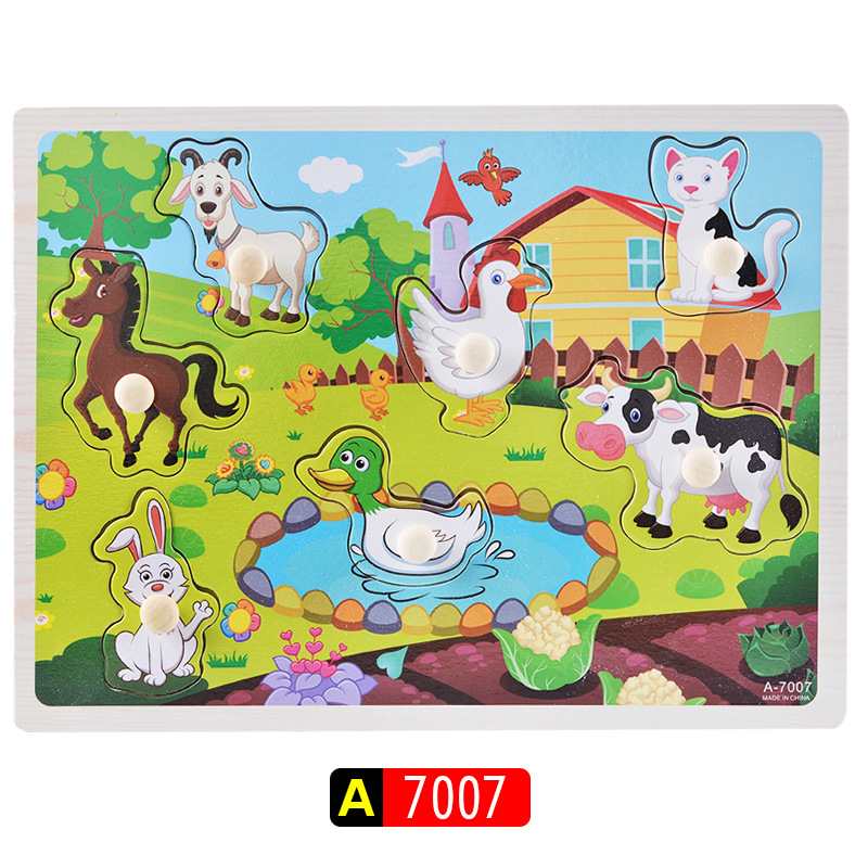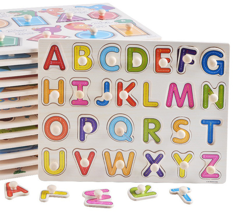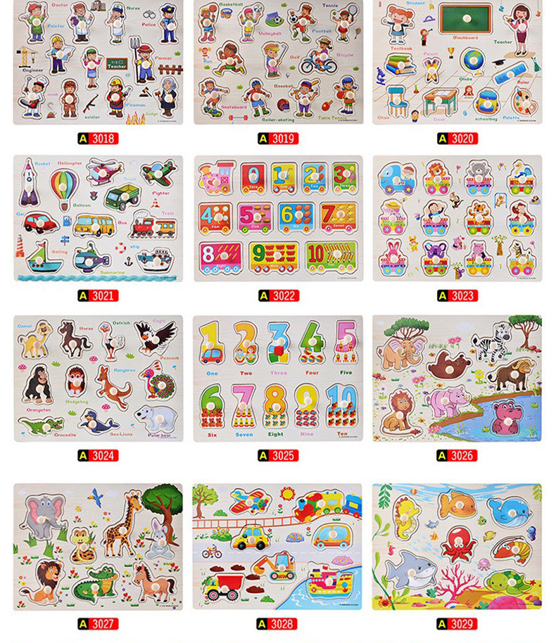 나무 어린이 손잡이 보드, 과일 및 동물 입체 교육 퍼즐 블록 장난감, 아기 인지 조기 교육 장난감스토어 가기
