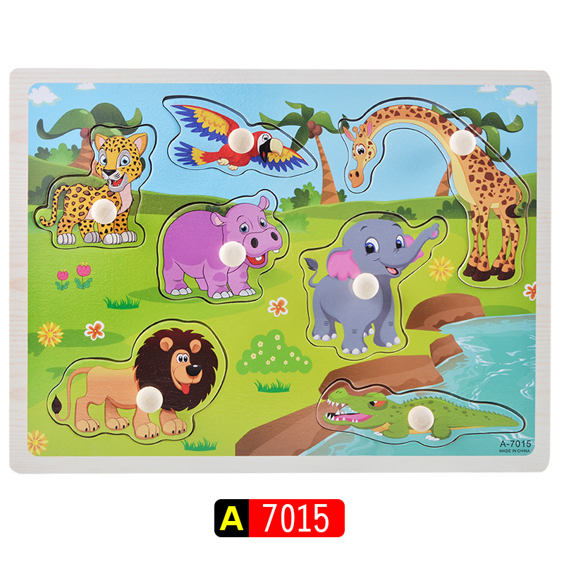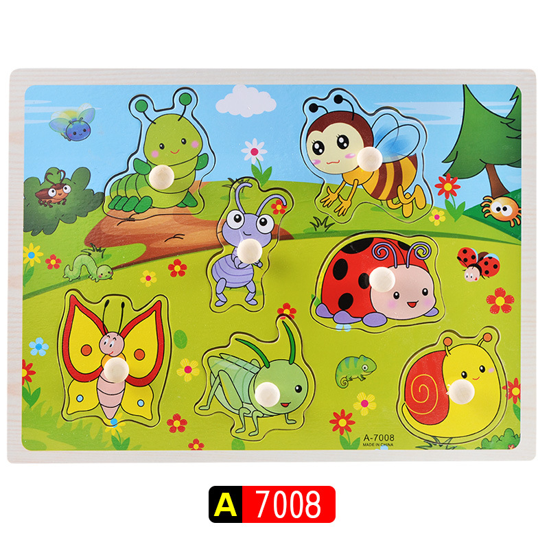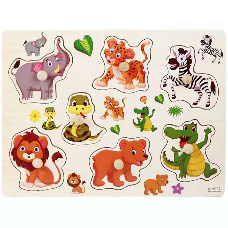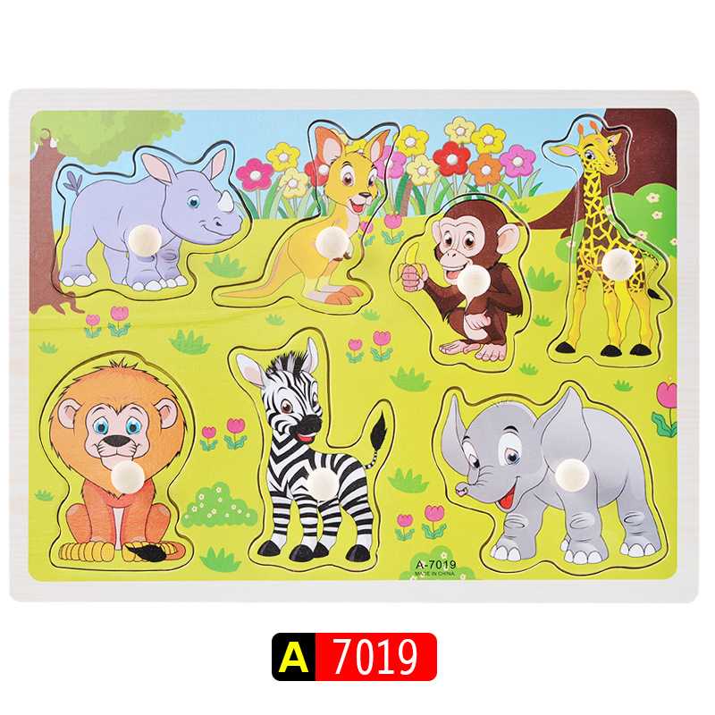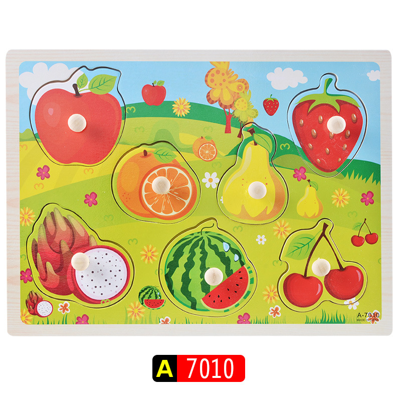 나무 어린이 손잡이 보드, 과일 및 동물 입체 교육 퍼즐 블록 장난감, 아기 인지 조기 교육 장난감