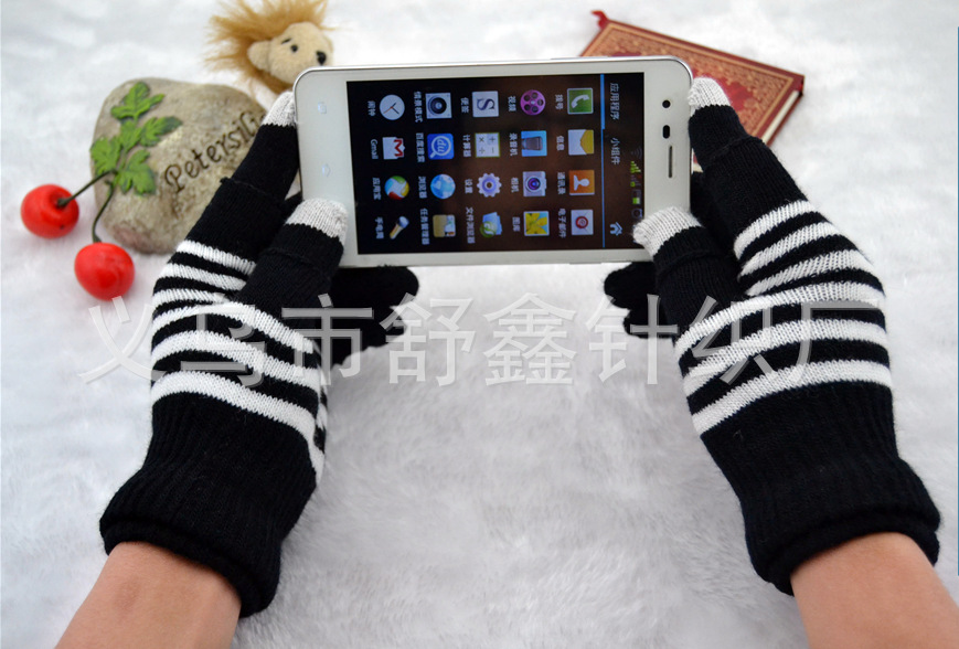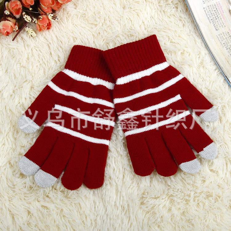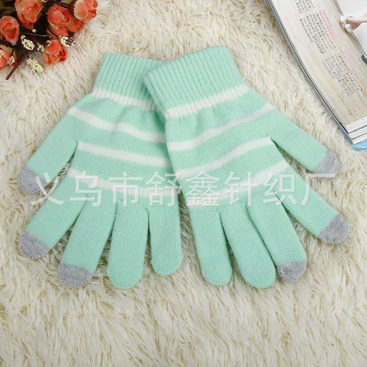 새로운 스트라이프 터치 스크린 니트 장갑 멀티 컬러 울 장갑 이우 공장 직판스토어 가기