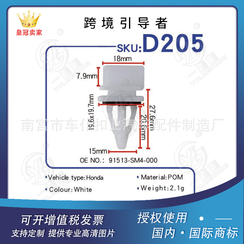 혼다 자동차 하부 빔 버클/스커트 장식 버클 D205 에 적합