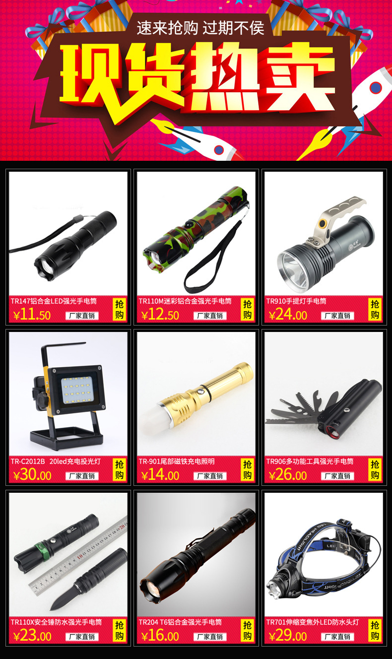 1、手电筒保修说明: 本公司所售手电筒最少保修时间为1年,产品保修期从发出日期开始算。1年内出现质量问题,免费维修,免费更换配件(只含电子原件),人为损坏不在此保修范围内。1年以后出现问题,免维修费用,收取更换配件成本费用。 2、 锂电池保修说明: 由于锂电池属于易耗品,请在收到货物后就查看电池使用是否正常。且在以后的使用中规范使用,不带保护锂电池严禁把电耗净,一定要保持电池还有余电就充电。只要不把电量耗尽就可以长期使用,因为电池不带记忆功能,就没有什么寿命期限,电池电量耗尽了一次电池就报废了,无论是否带保护电池,如果长时间闲置不用的话,都需要带电保存,否则自放电可能导致电池坏掉。收到货物24小时以内如未有问题,我公司将视为正常,过了24小时电池发现问题的将不给于保修,请各位客户务必注意! 3、质量问题来回运费说明: 我公司所有产品出厂均全检,客户收到货物如果有发现问题请在24小时内及时与我们取得联系。如收到货物7天内发生质量问题,来回邮费我公司承担。7~15天内,发回邮费需买家自行承担。15天以后来回邮费均为买家承担(发过来的时候麻烦先把快递费垫付一下,我公司拒收任何到付件,请谅解下。我们收到您返回来的货品后会及时帮您处理好,以及通过支付宝等方式返还快递费款给您)。 4、产品返修说明: 若您有需要返厂维修的产品,请在需返修产品金额达200RMB或数量达10个以上一起返回,除此外,我公司不承担任何返修运费(因为批发利润微薄,敬请理解)。 5、产品换货说明: 自发货之日起15天内,如收到货品不满意(非质量问题),且在不影响产品二次销售的情况下,我们免费为你提供一次换货服务,退换来回运费需客户自行承担。 |