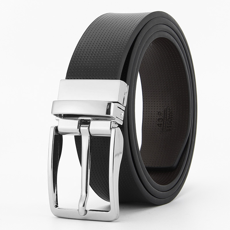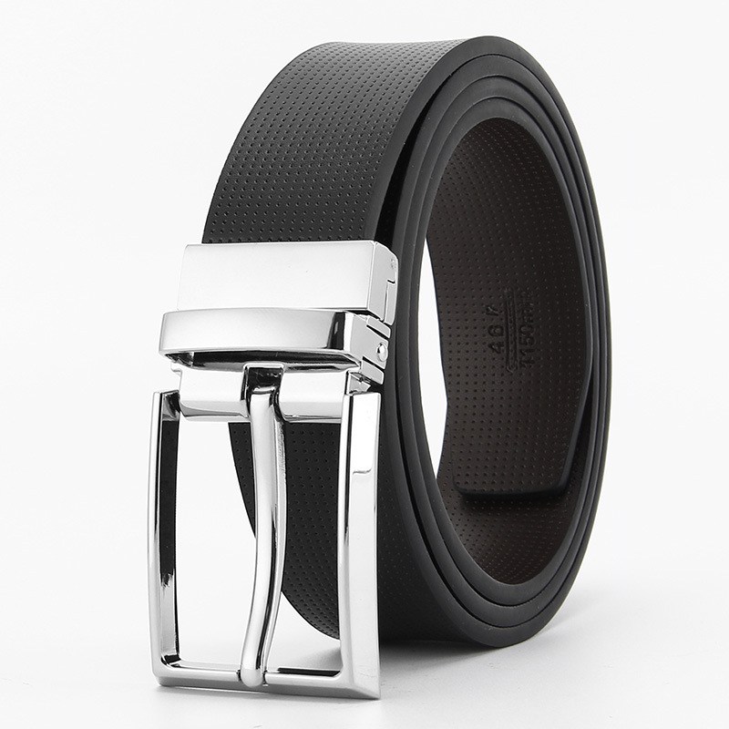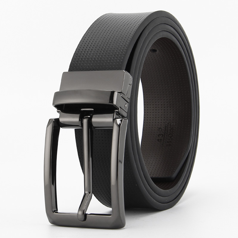 工厂现货 针扣皮带男士 双面可用真皮休闲时尚腰带旋转扣跨境