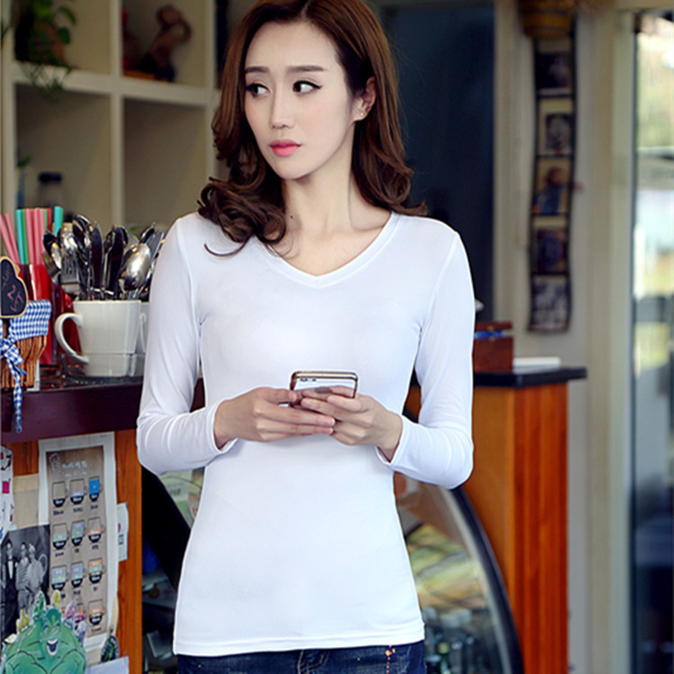 2025 새로운 여성 흑백 여성 긴팔 봄 티셔츠 가을 여성 t 여성 슬림 밀크 실크 바닥 셔츠 이베이