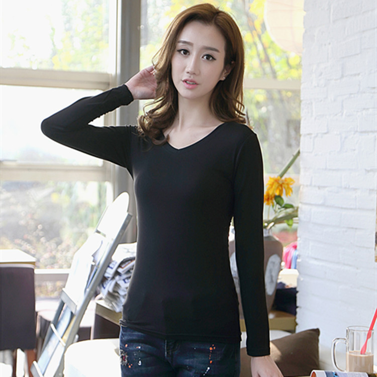 2025 새로운 여성 흑백 여성 긴팔 봄 티셔츠 가을 여성 t 여성 슬림 밀크 실크 바닥 셔츠 이베이스토어 가기