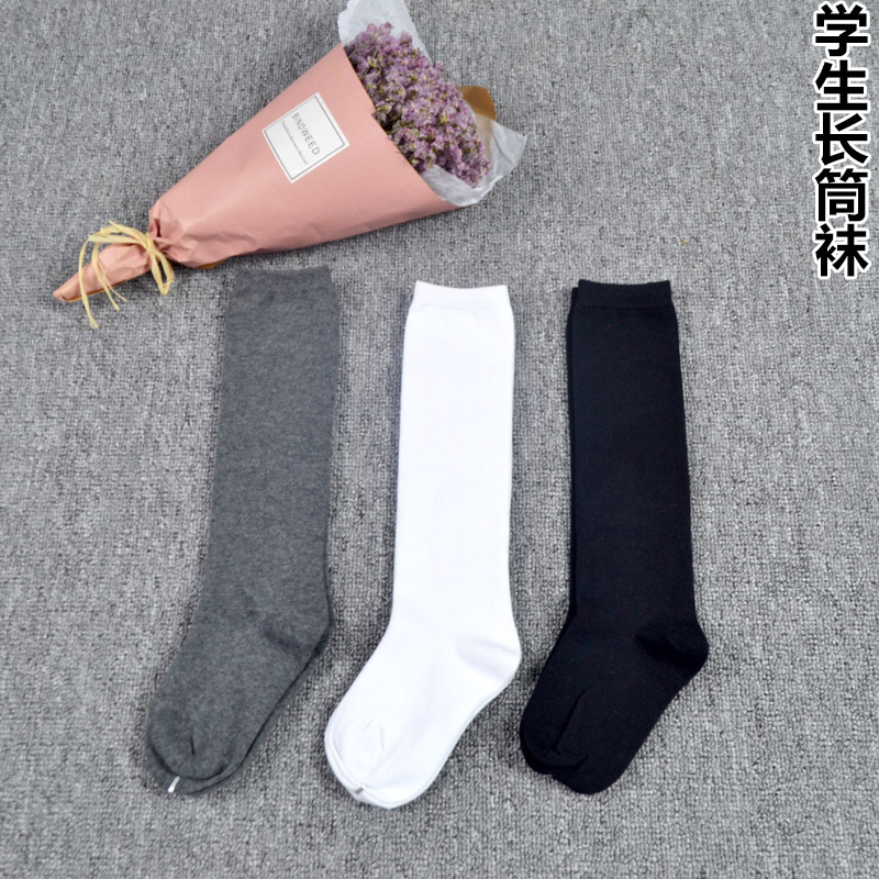 뼈없는 스티치 어린이 스타킹 남성 및 여성용 어린이 면 무릎 위 학생 양말 부드러운 면 양말 흑백 회색스토어 가기