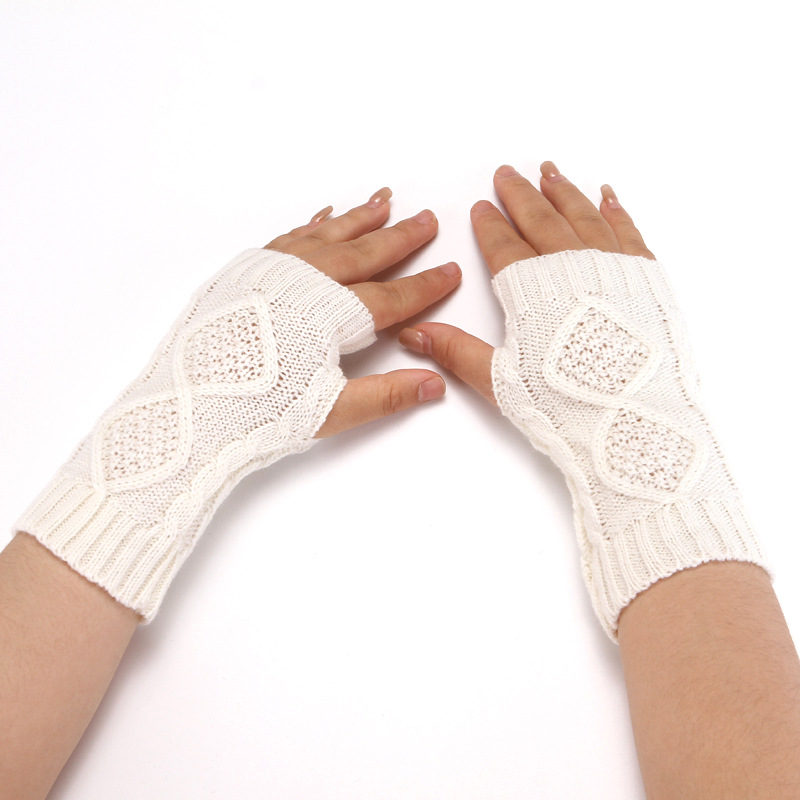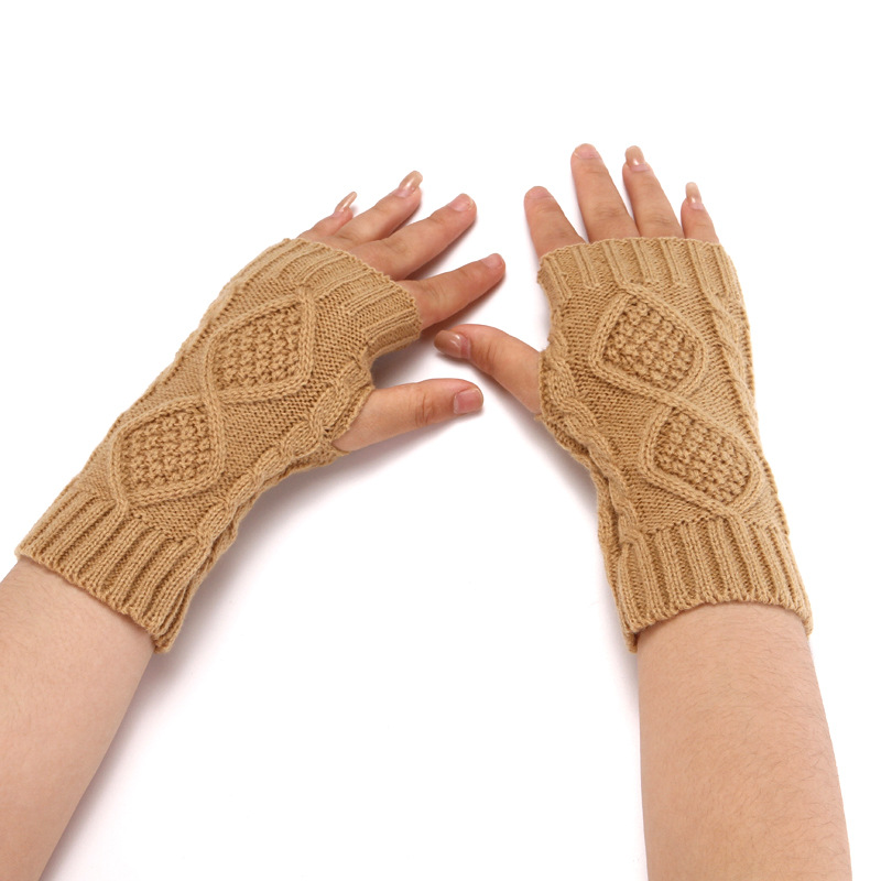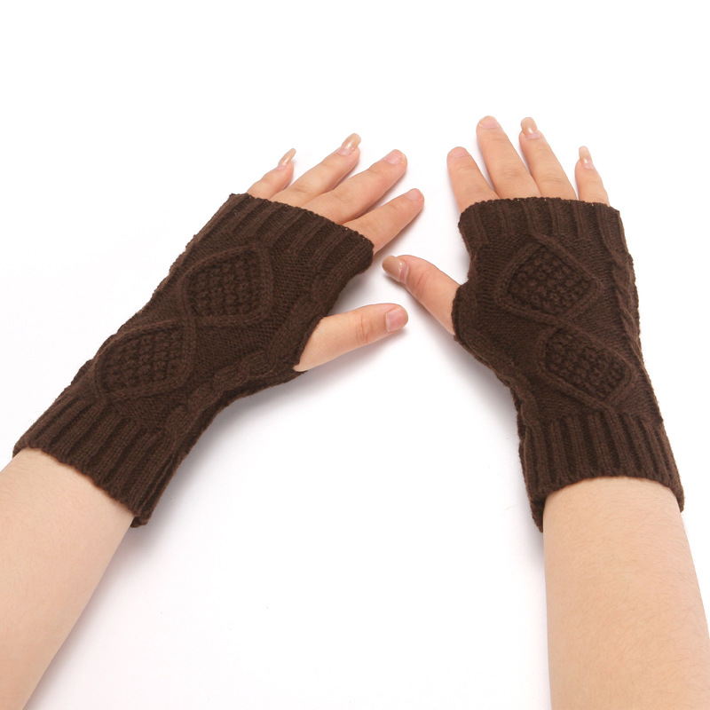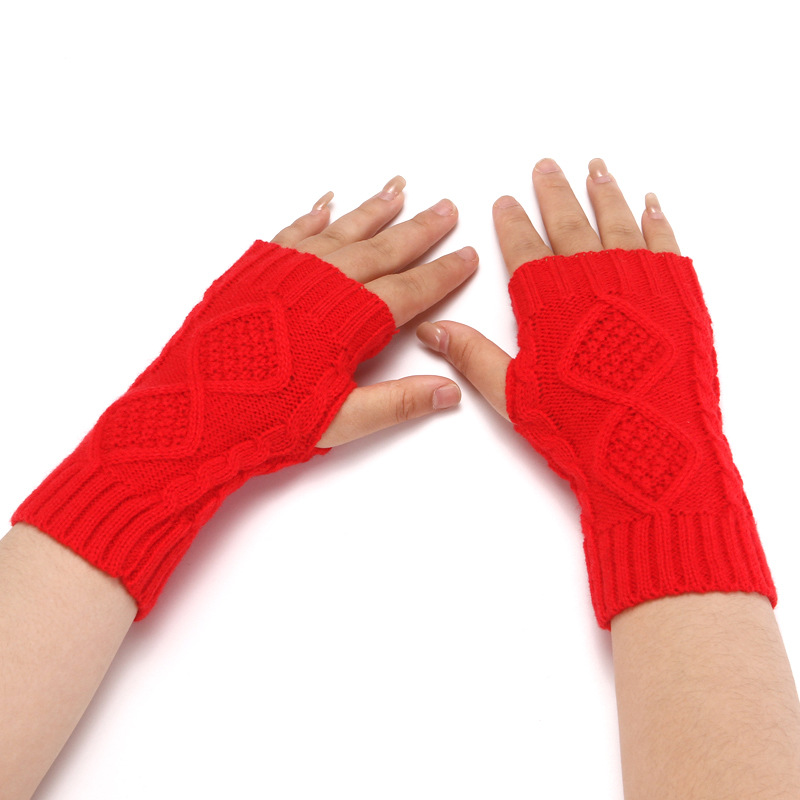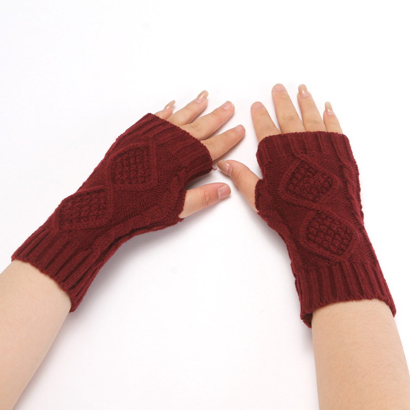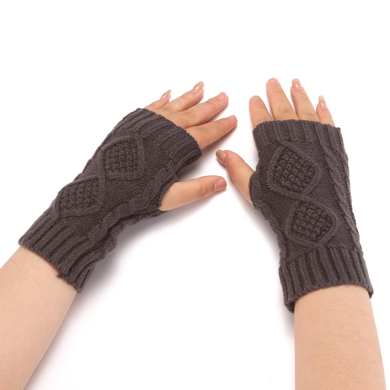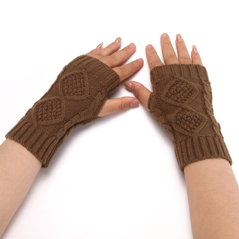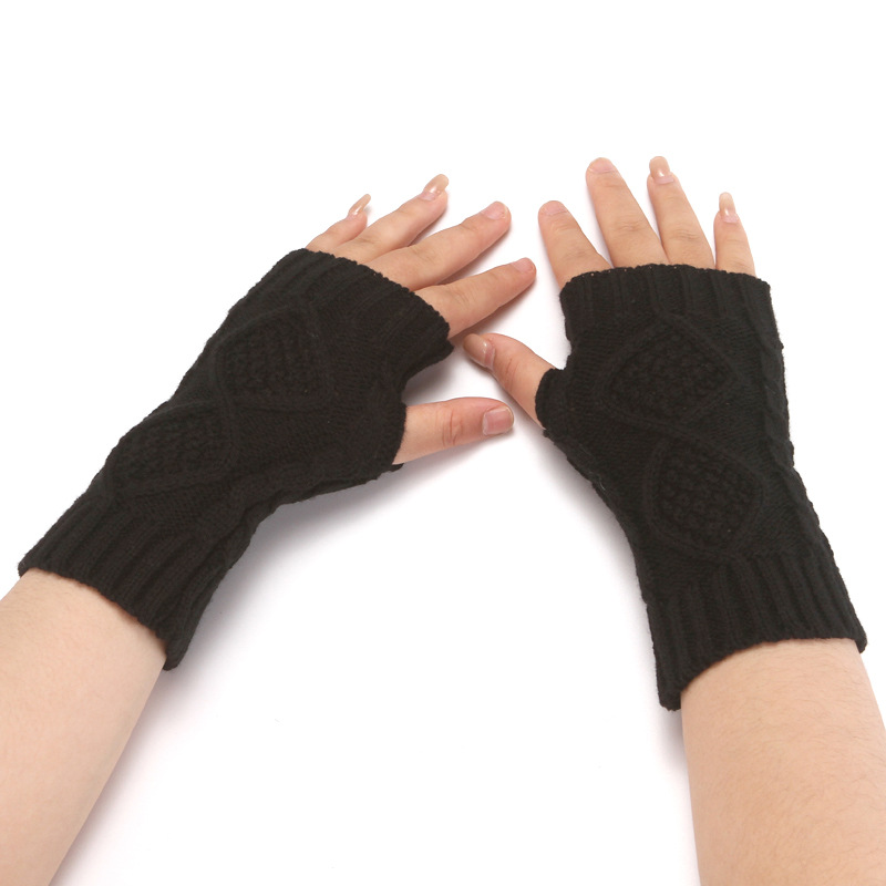 니트 장갑 남성과 여성의 짧은 반 손가락 오픈 손가락 소매 겨울 따뜻한 귀여운 오픈 손가락 다이아몬드 격자 무늬 장갑