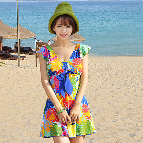 수영복 여성용 원피스 스커트 스틸 플레이트 플러스 사이즈 큰 배꼽 덮음 슬림 한국 온천 수영복 Haibaud 1506