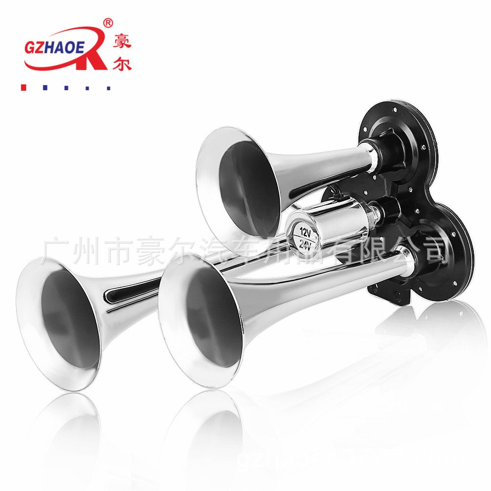 豪尔电控气喇叭,具有做工考究,色泽鲜艳,镀铬反光亮泽的特点,电磁阀内芯为铜线,产品本身除了豪尔防伪标志外,没有另外其他标志,敬请注意