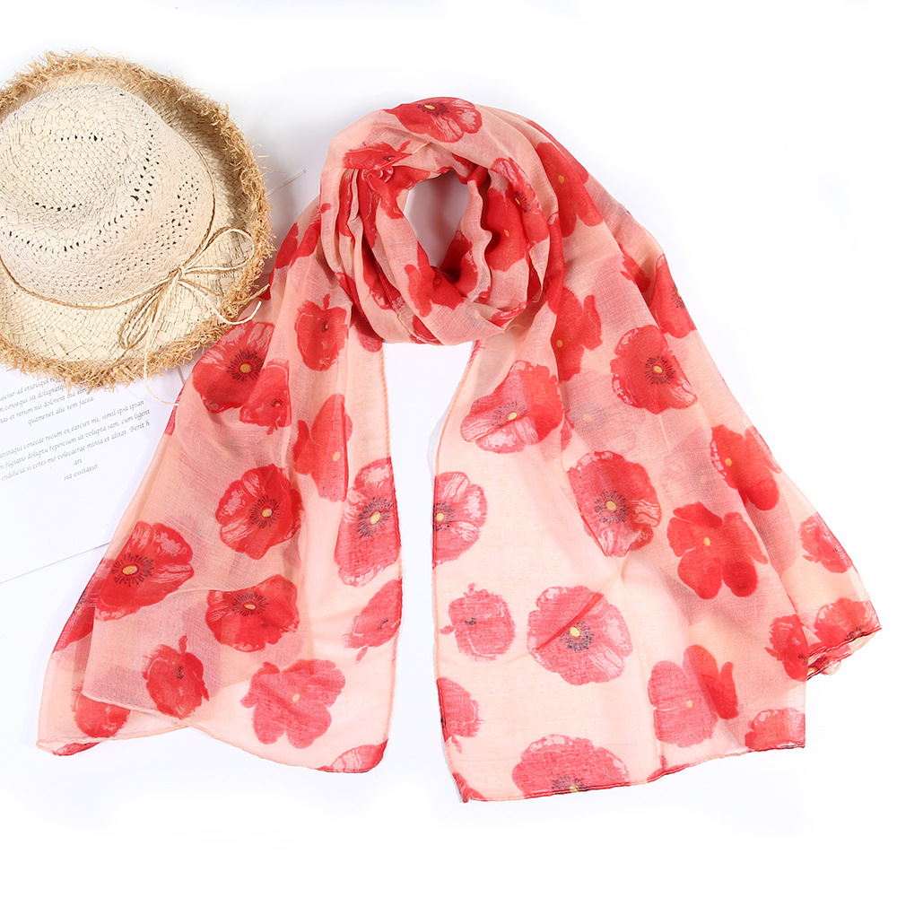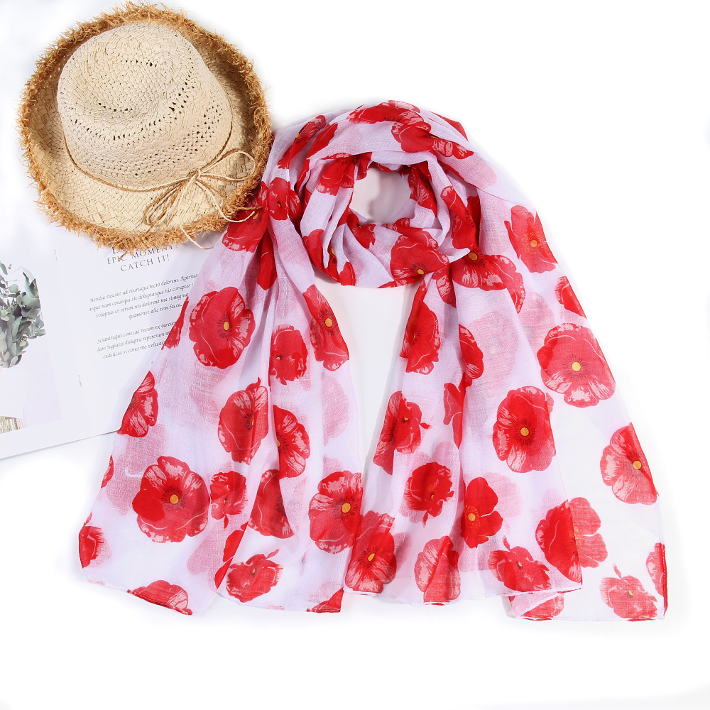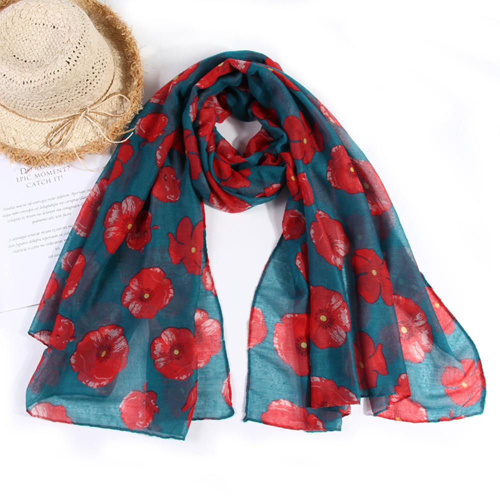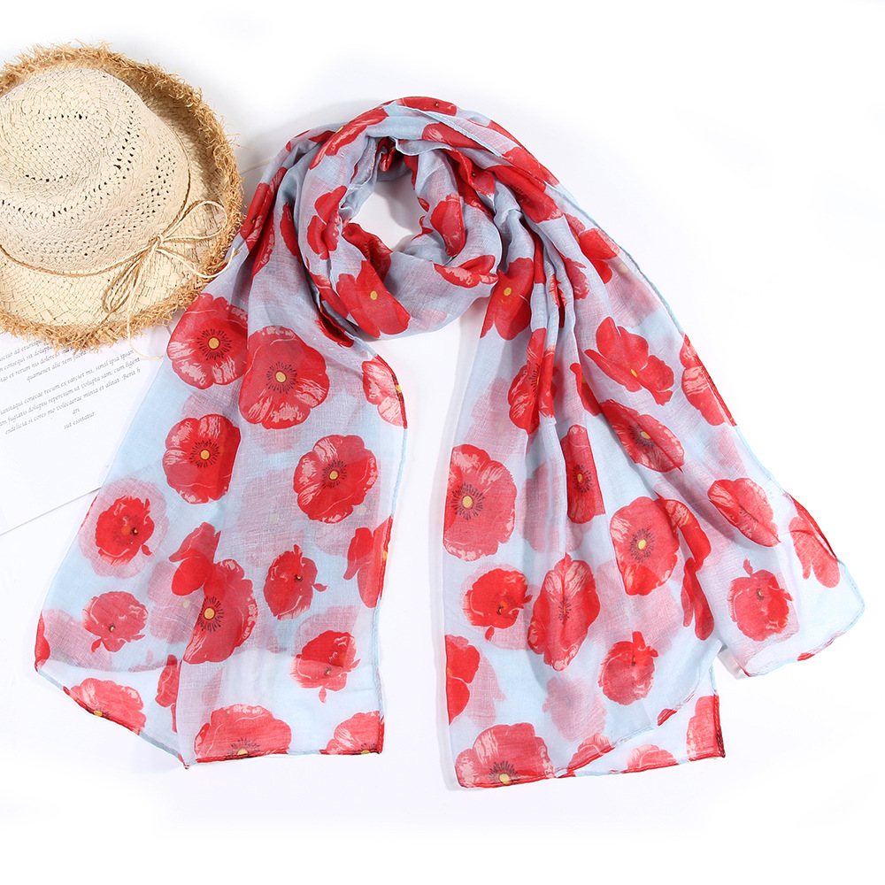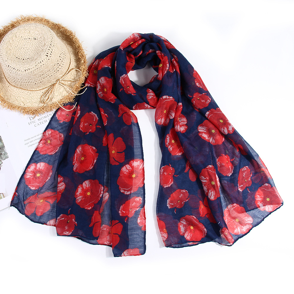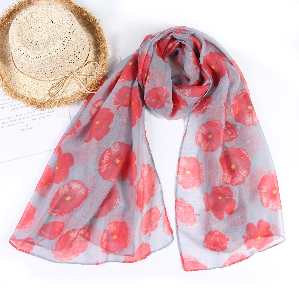 2020 새로운 유럽과 미국 양귀비 꽃 패턴 꽃 인쇄 스카프 파리 원사 폭발 다년생 스타킹스토어 가기