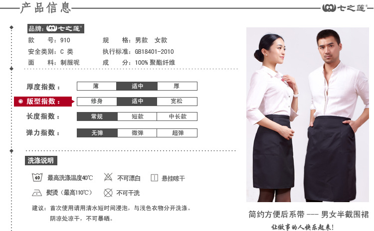 심플 클리어 컬러 하프 길이 작업 앞치마 910 여성 및 남성 호텔 커피 숍 레스토랑 주방 앞치마 사용자 정의스토어 가기
