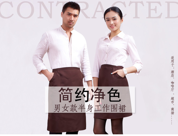 심플 클리어 컬러 하프 길이 작업 앞치마 910 여성 및 남성 호텔 커피 숍 레스토랑 주방 앞치마 사용자 정의