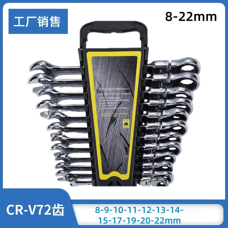 절강 공장 직접 공급 8-22 크롬 바나듐 스틸 180 도 조절 가능한 래칫 렌치 세트 플렉시블 헤드 이중 목적 래칫 렌치스토어 가기