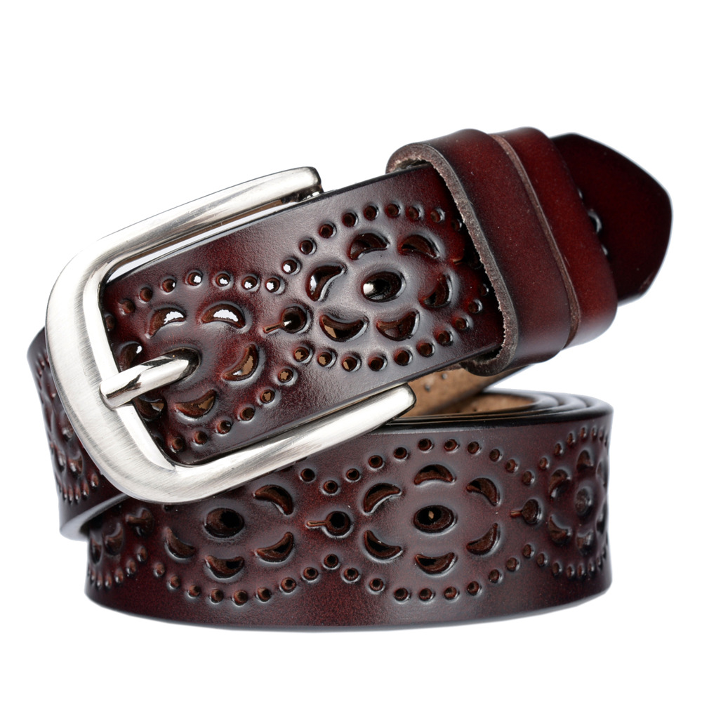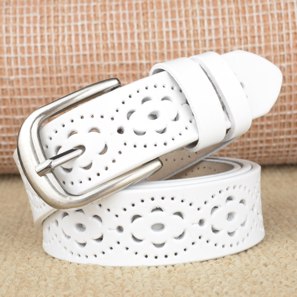 여성용 가죽 벨트 소가죽 캐주얼 성격 중공 벨트 여성의 고급 장식 간단한 패션 소가죽 핀 버클 벨트