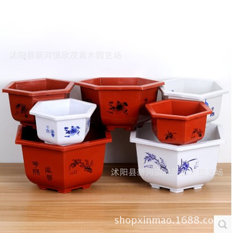직접 판매 육각 화분 육각 두꺼운 플라스틱 빨간색과 흰색 대형 화분 꽃 접시 복고풍 중국 스타일