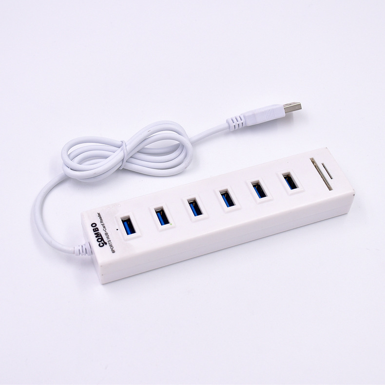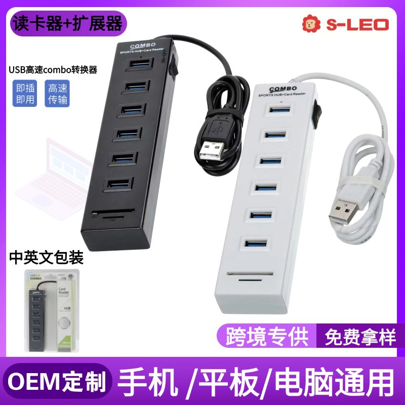 电脑 usb扩展器2.0分集线器 2合1读卡器 SD/TF 6USB+2 扩展器 HUB