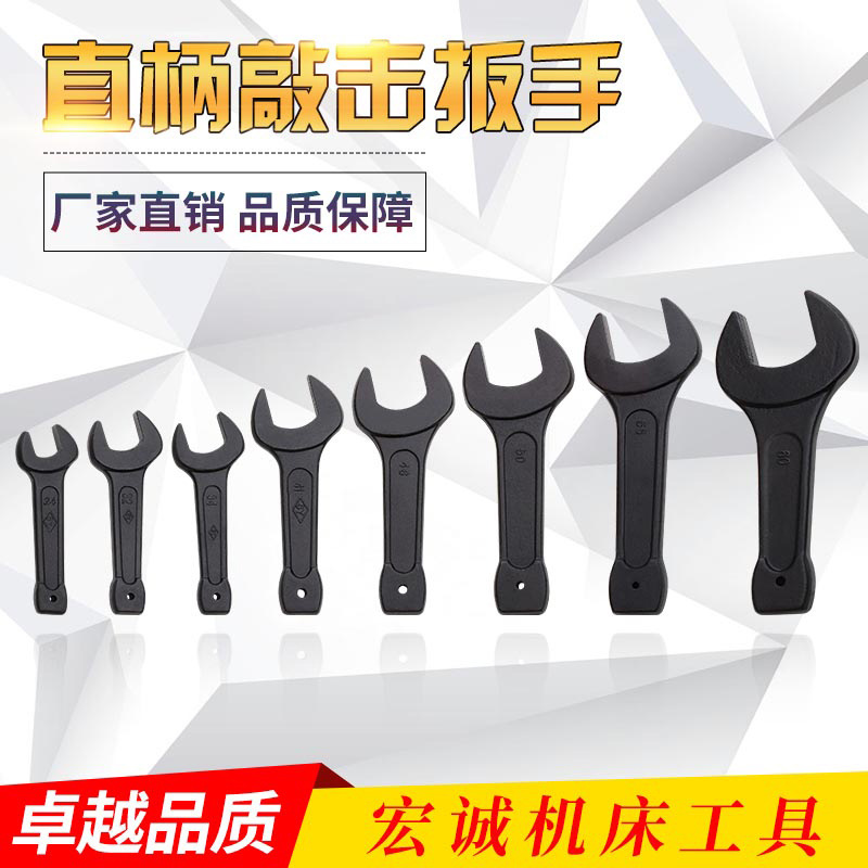 敲击开口扳手轻便耐用,适合长时间工作及狭窄空间。手柄舒适易握、硬度高、扭力大、不易磨损、使用寿命长。规格有22、24、27、30、32、34、36、38、41、46、50、55、60、65、70、75、80、85、90、95、100、105、110、115、120、125、130、135、140、145、150等,质量优良。