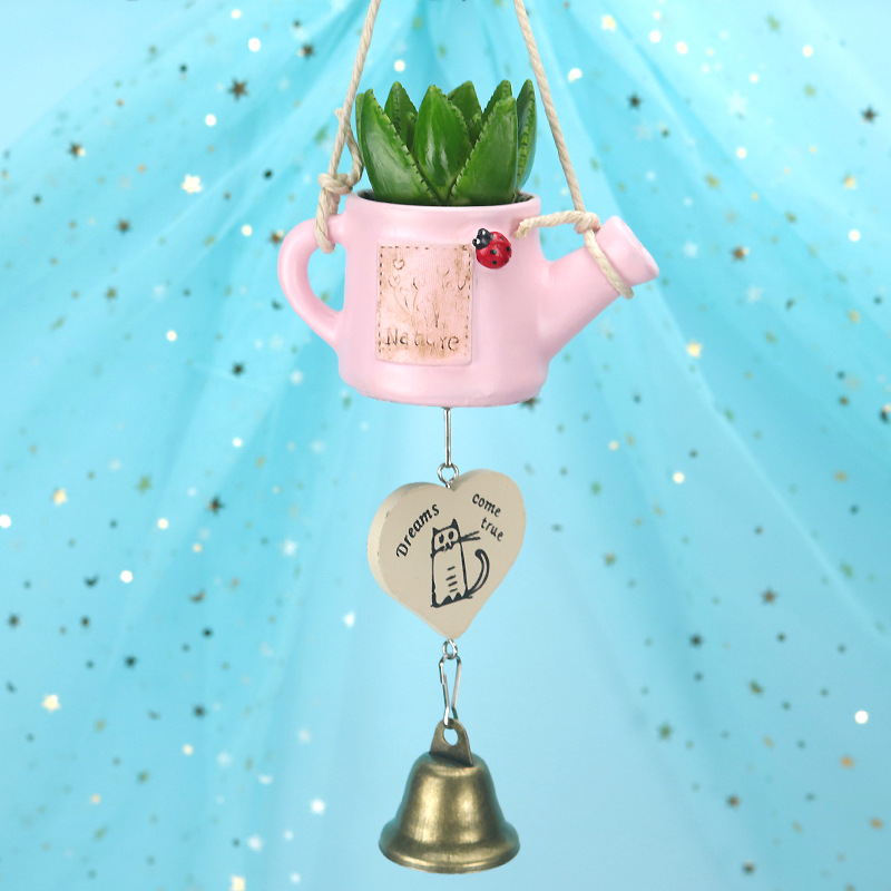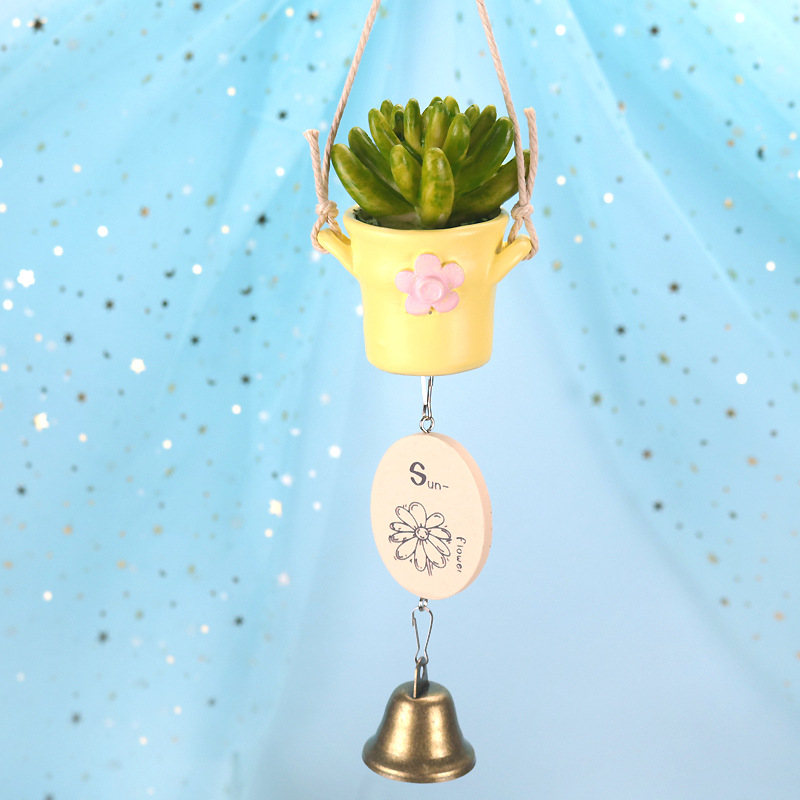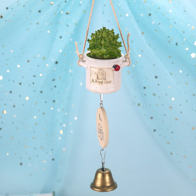 창조적 인 화분에 다육 식물 일본식 수지 장식 자동차 바람 종 매달려 벨 생일 선물