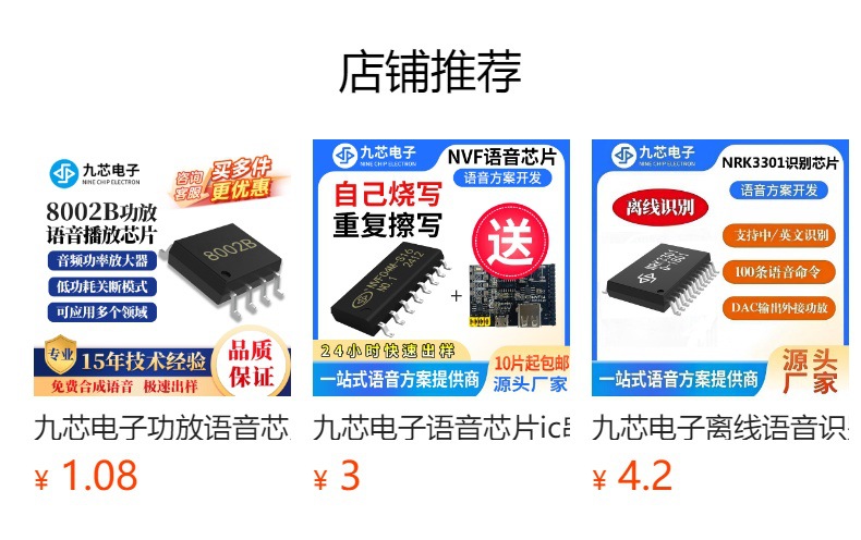 9코어 전자 음성 칩, 음악 재생 칩, IC 초인종 칩, OTP 직접 출력 0.5W 스피커, NVC 시리즈스토어 가기
