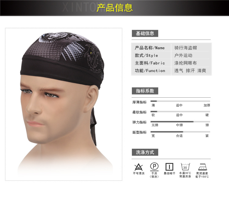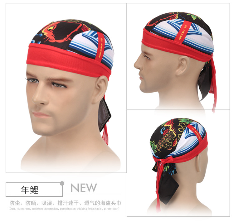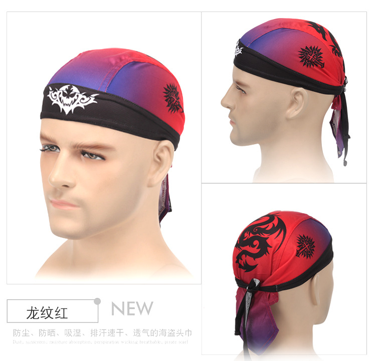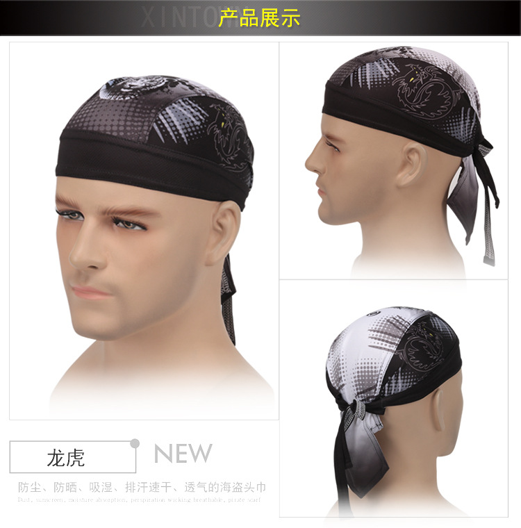 XINTOWN 드래곤 타이거 해적 모자 사이클링 야외 스포츠 해적 머리 스카프 땀 흡수 땀 수건 자전거 스포츠 모자