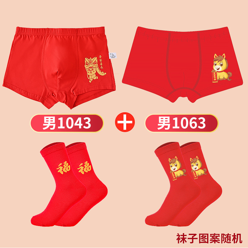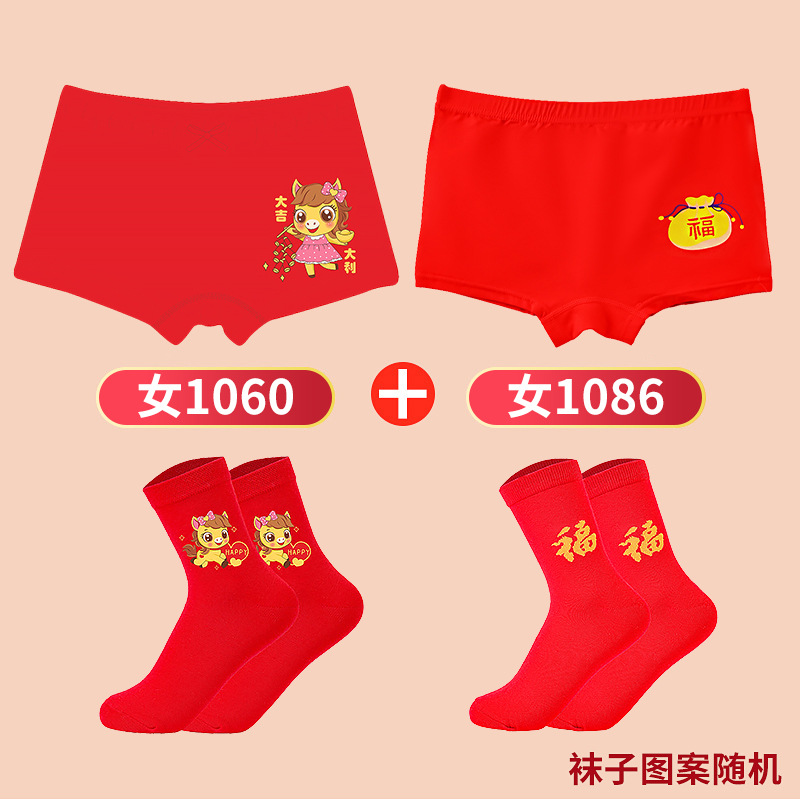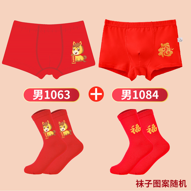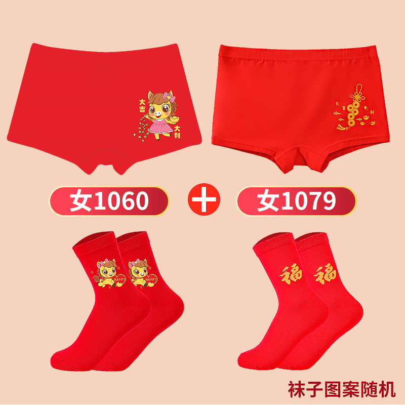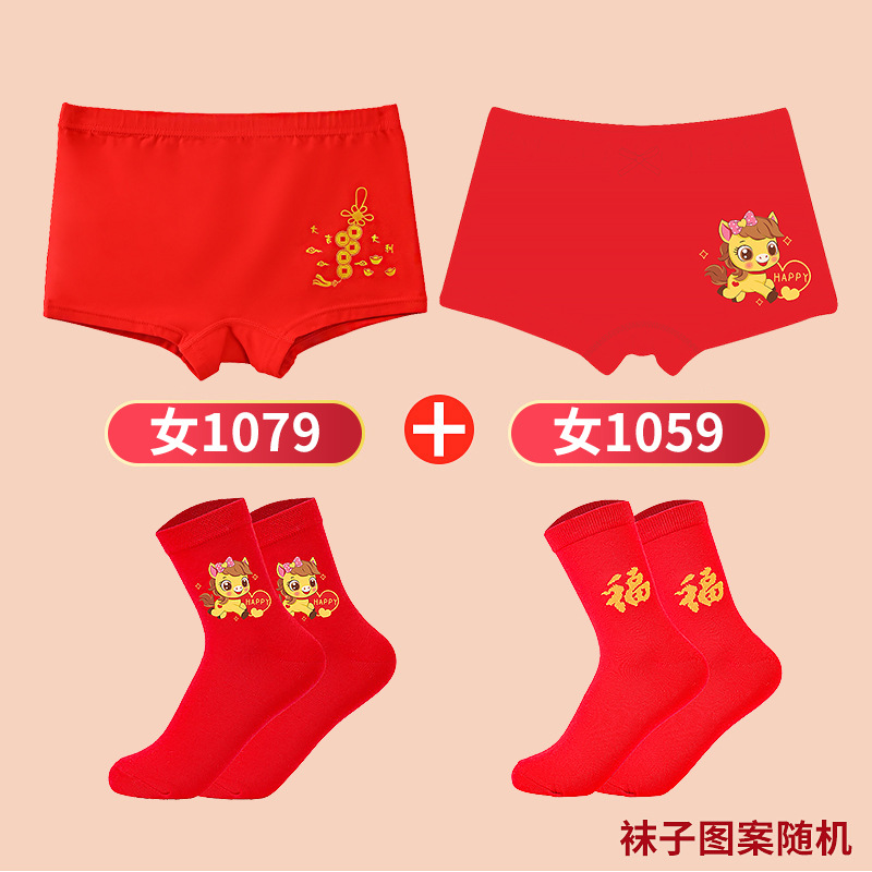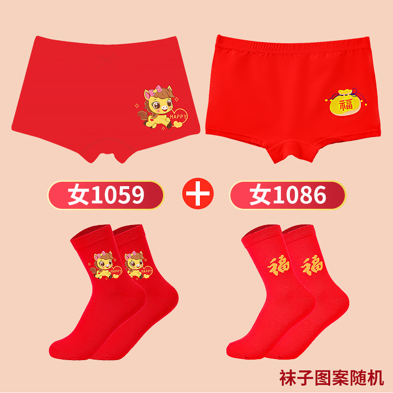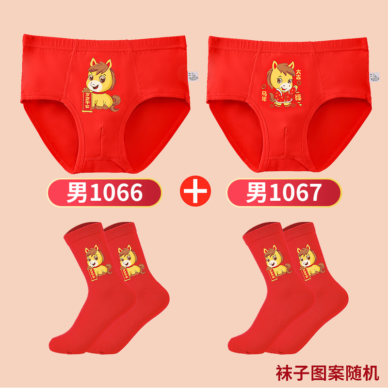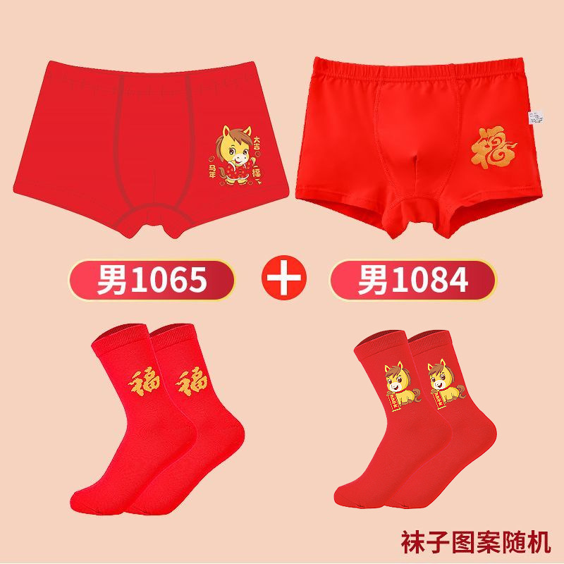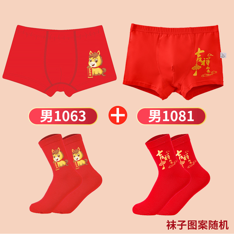 남아용 빨간색 속옷, 12세 말띠, 중년 이상 여아용, 어린이 순면 사각팬티/삼각팬티 선물세트