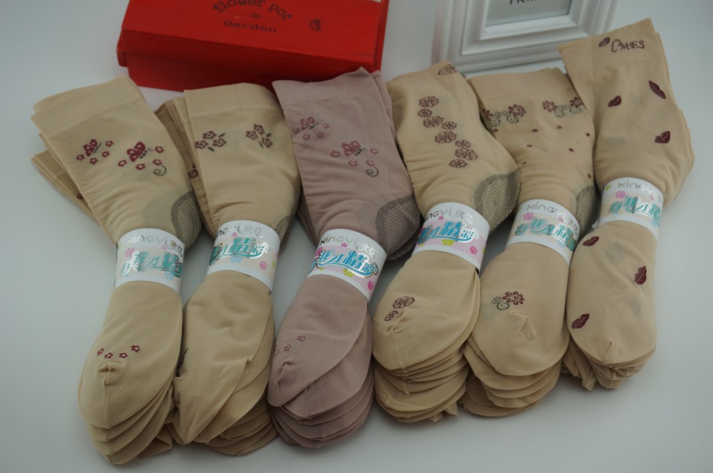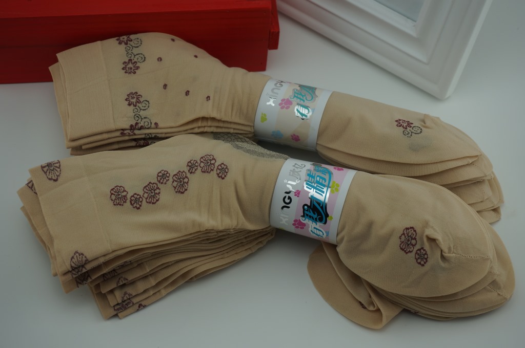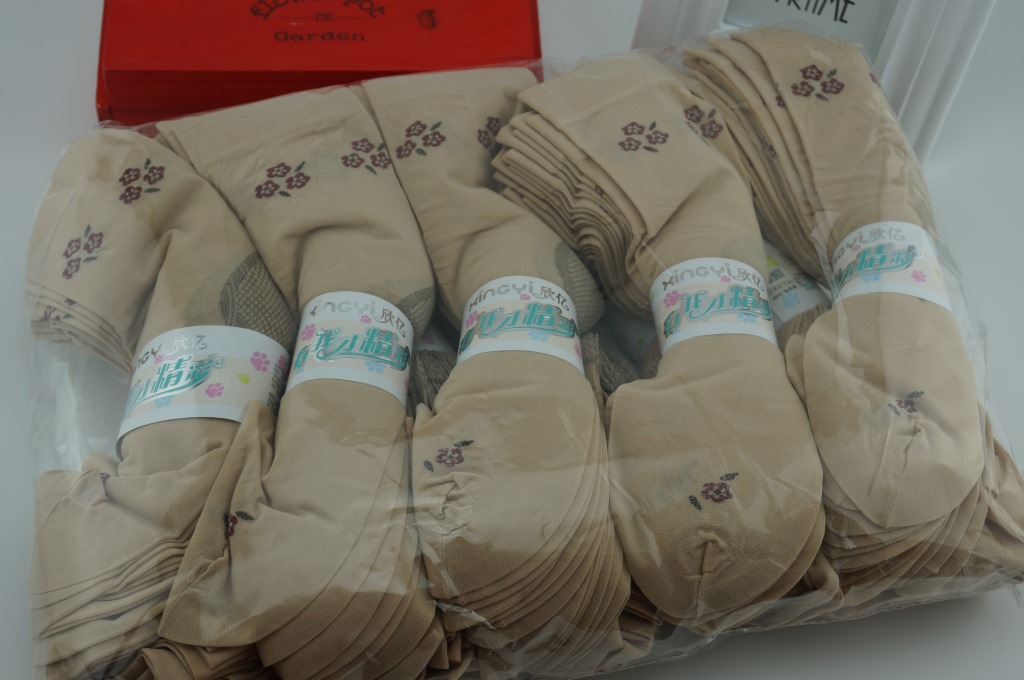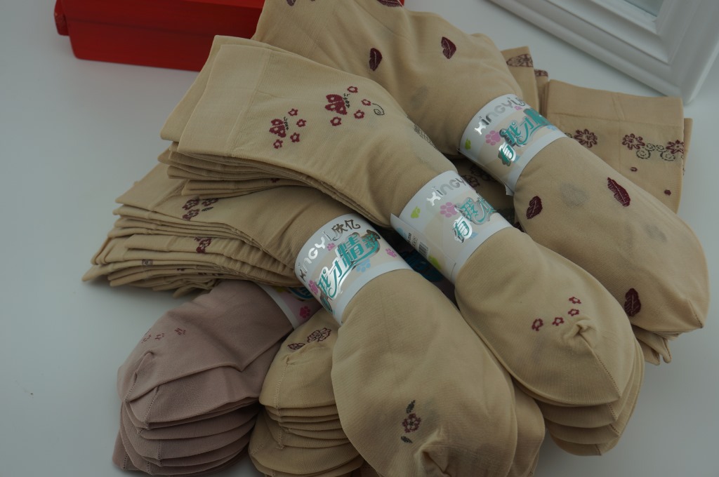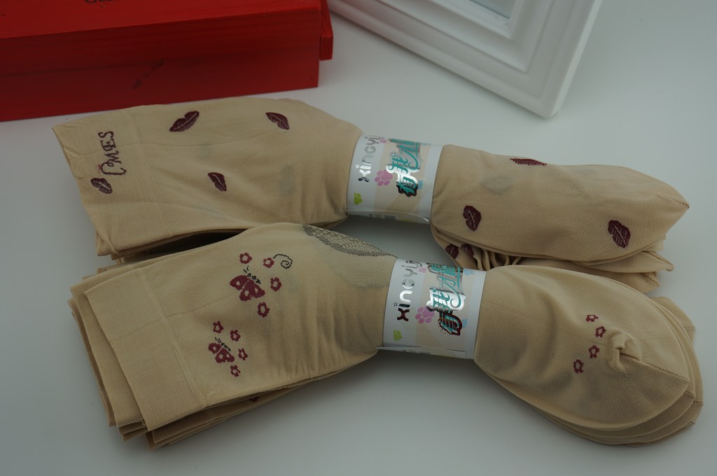 包装:十双一捆用商标纸固定,一百双一个中包袋,每包颜色花型一样,请按10的倍数拍