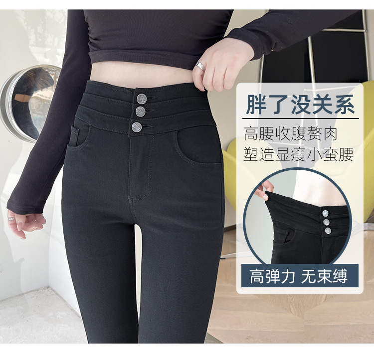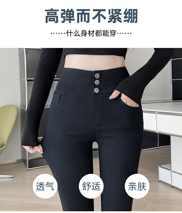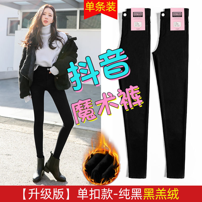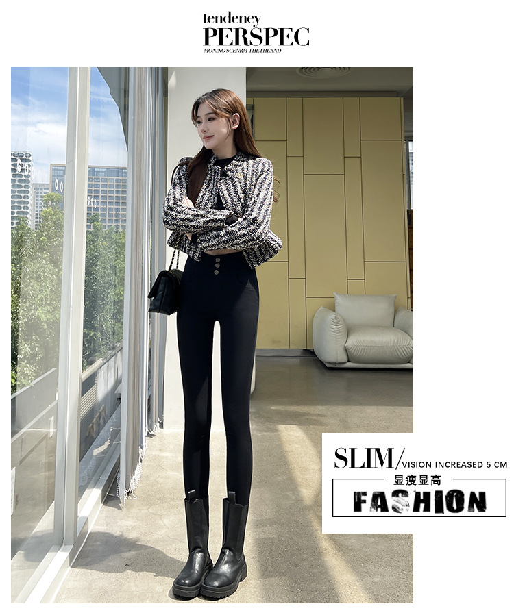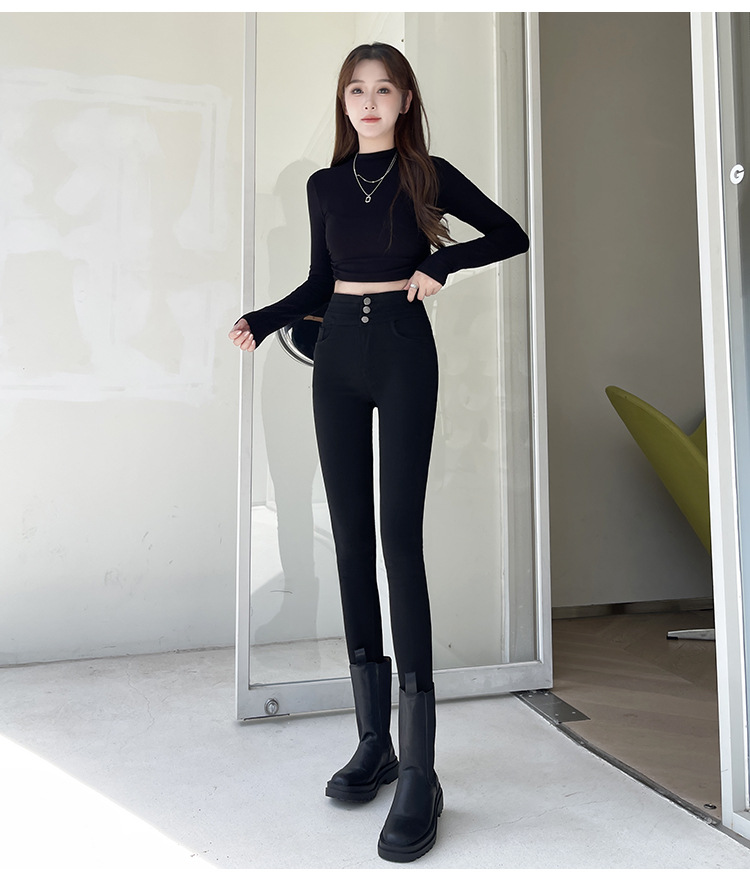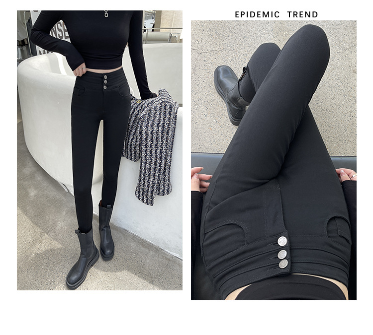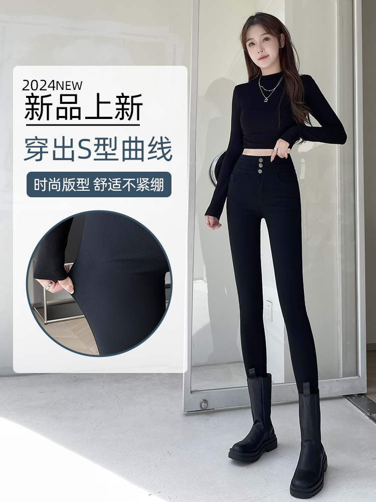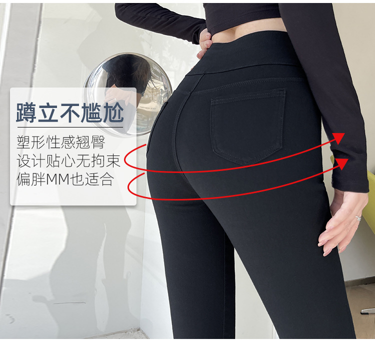 블랙 얇은 레깅스 여성용 봄/가을용 두꺼운 면바지 하이웨이스트 타이트 탄력있는 펜슬핏 스몰 블랙 팬츠스토어 가기