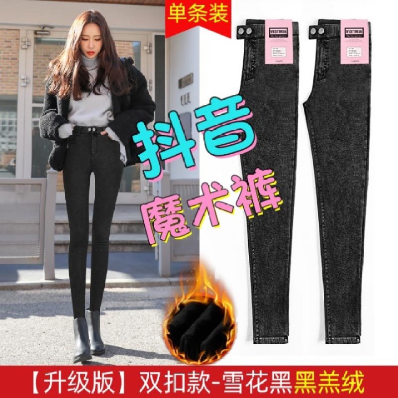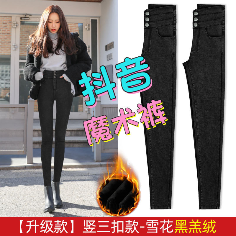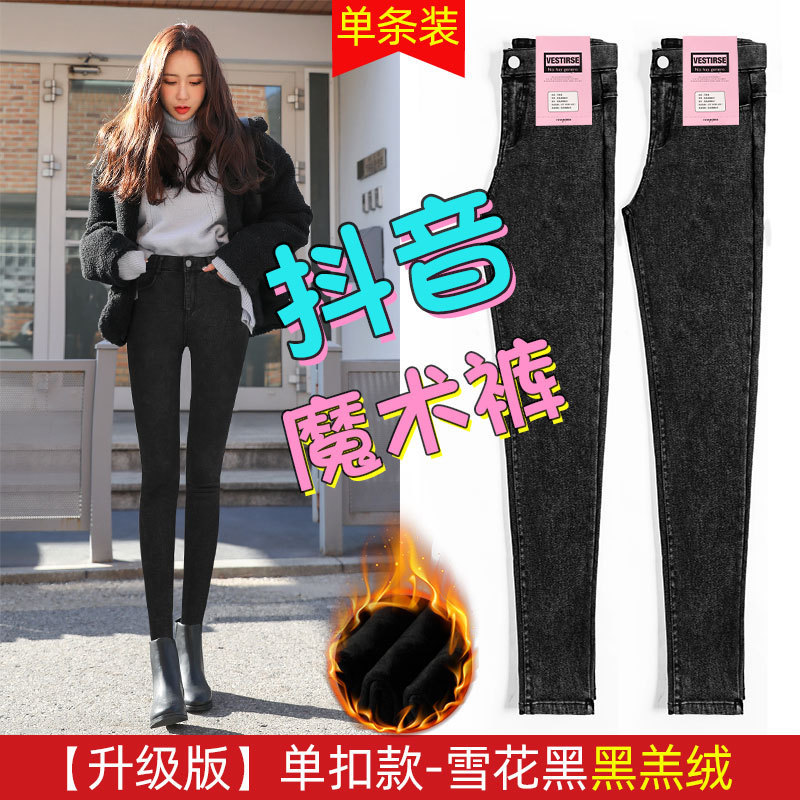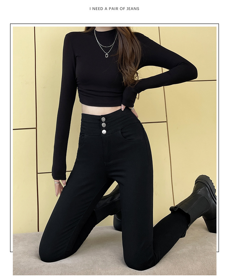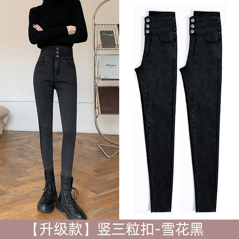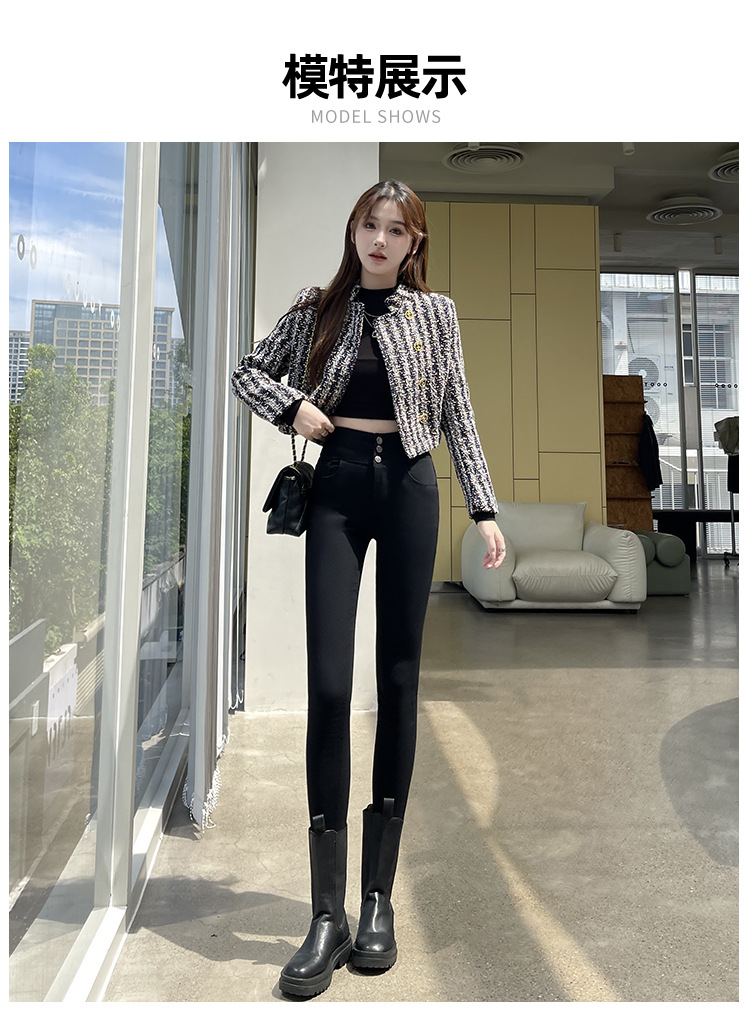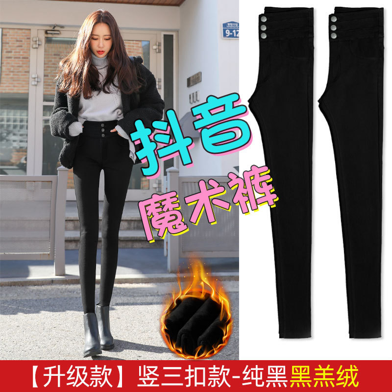 블랙 얇은 레깅스 여성용 봄/가을용 두꺼운 면바지 하이웨이스트 타이트 탄력있는 펜슬핏 스몰 블랙 팬츠스토어 가기
