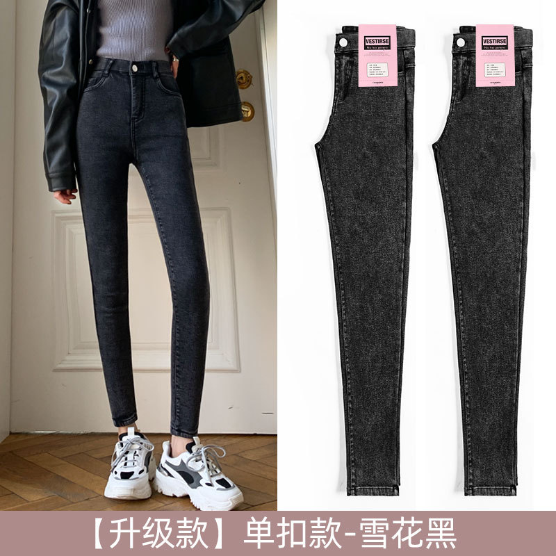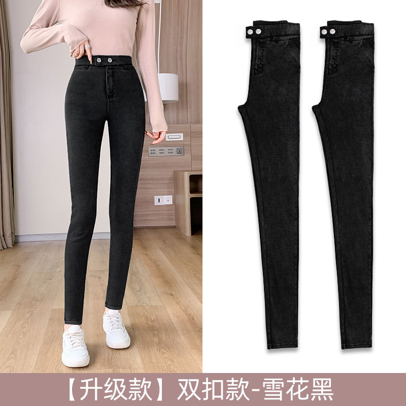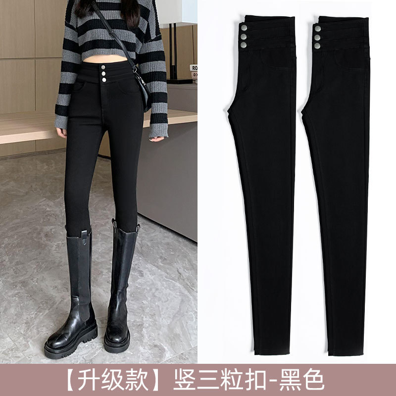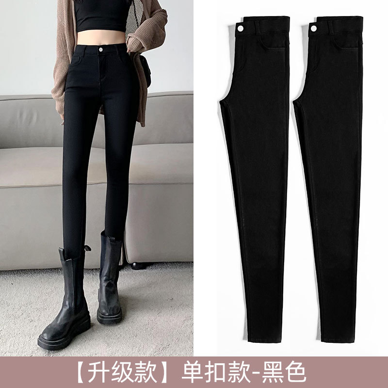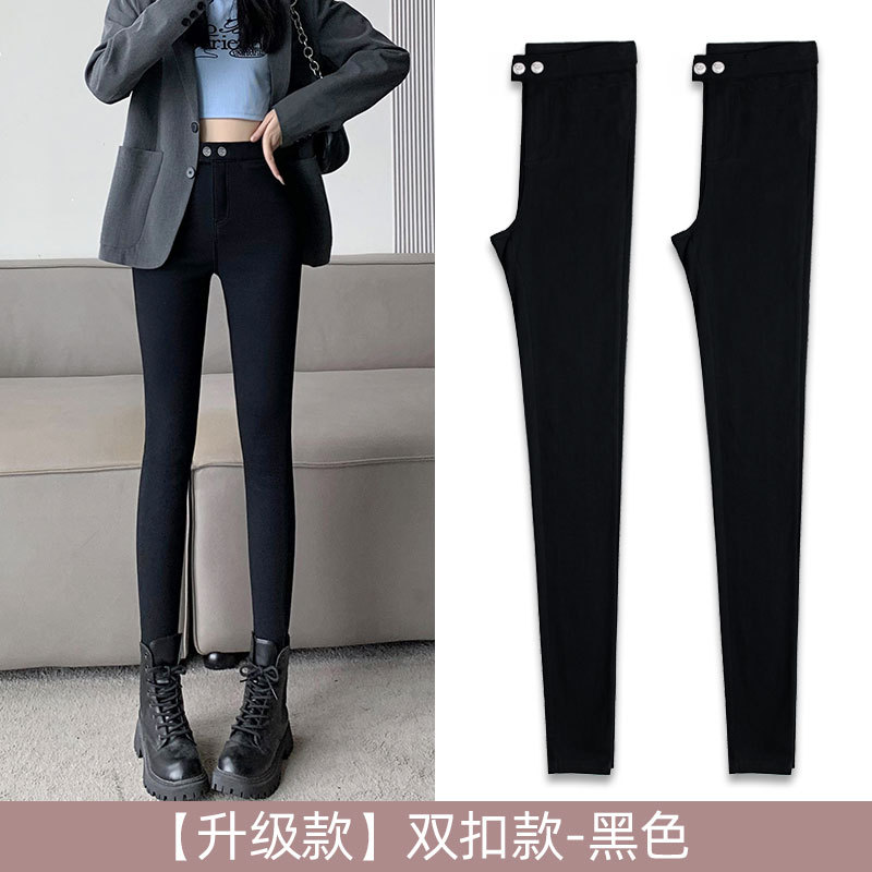 블랙 얇은 레깅스 여성용 봄/가을용 두꺼운 면바지 하이웨이스트 타이트 탄력있는 펜슬핏 스몰 블랙 팬츠