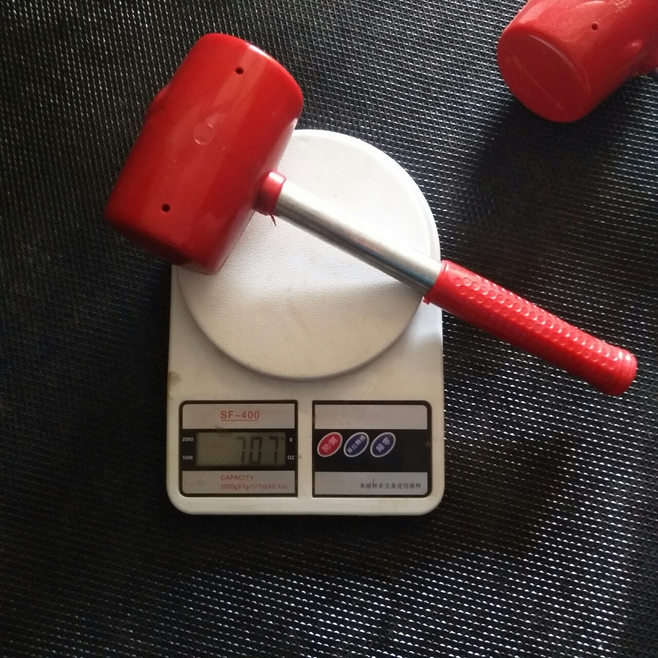 钢管柄红色橡胶锤 头部与手柄采用一体化设计,更加结实,不存在掉头的现象,内部为黑色橡胶锤,外部由优质pvc材料包装而成为红色!本产品包装采用编织袋包装,包装数分别为750g一件90  1000g一件60个  1500g一件50个  2000g一件为45个,如需大量批发请尽量以标准包装数量采购!750g锤头直径为5厘米1000g锤头直径为6厘米1500g锤头直径为7厘米2000g锤头直径为8厘米!锤头上的小眼位生产需要,每个都有,不是质量缺陷,介意慎拍