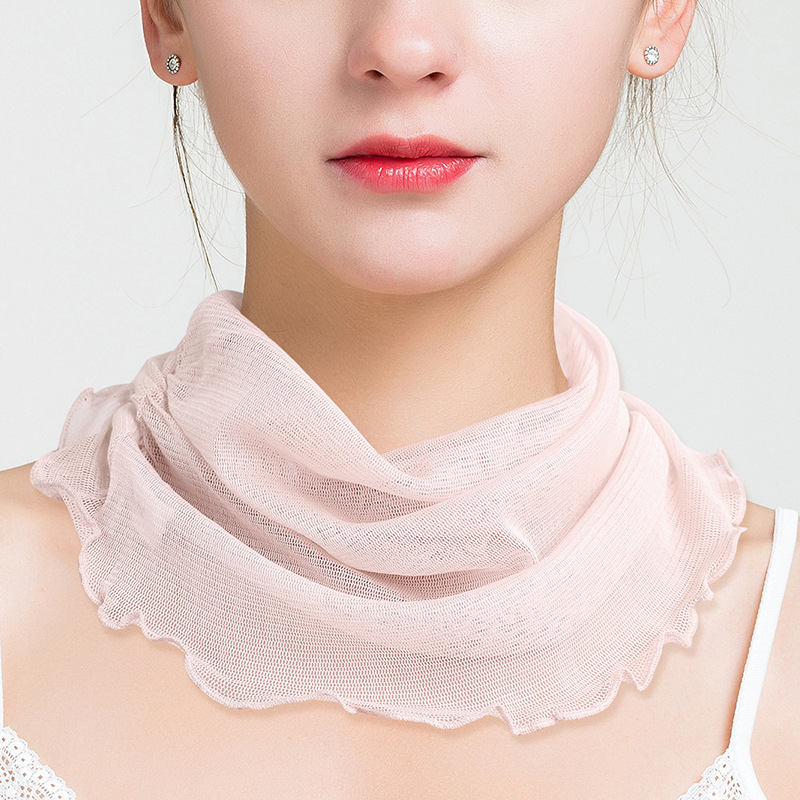 봄과 여름 단색 실크 메쉬 풀오버 스카프 뽕나무 실크 니트 가짜 칼라 선 스크린 칼라 작은 실크 스카프 여성용 스카프스토어 가기