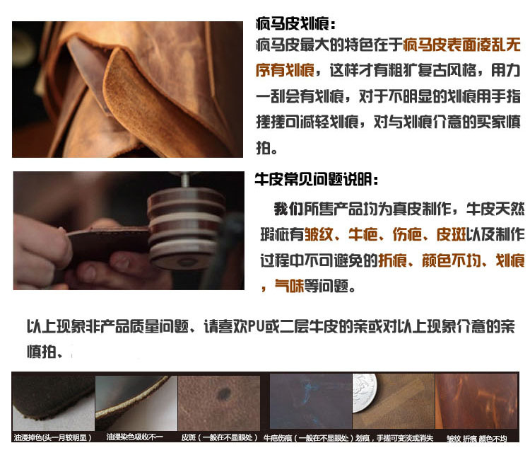 【材质】:进口头层牛皮