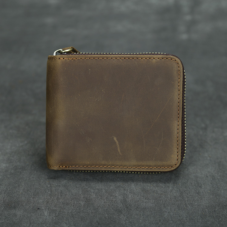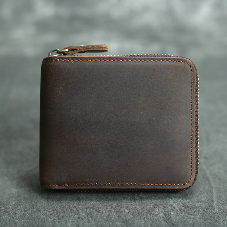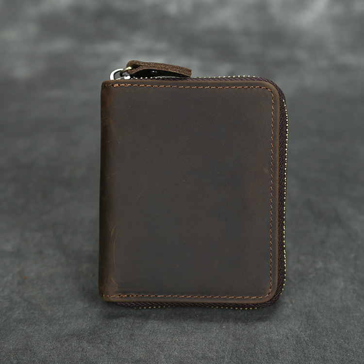 유럽과 미국 복고풍 남성 지갑 다기능 미친 말 가죽 지갑 2 배 체인 탑 레이어 소가죽 지갑 수평 및 수직