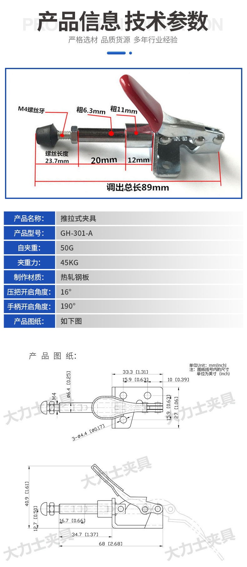 헤라클레스 퀵 클램프 푸시 풀 클램프 텐셔너 GH-301-AM-WDC 수동 퀵 클램프 도매