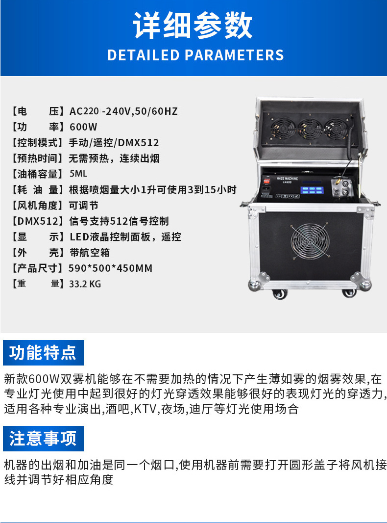 600W 이중 안개 기계 안개 기계 연기 기계 무대 효과 성능 조명 웨딩 KTV 바