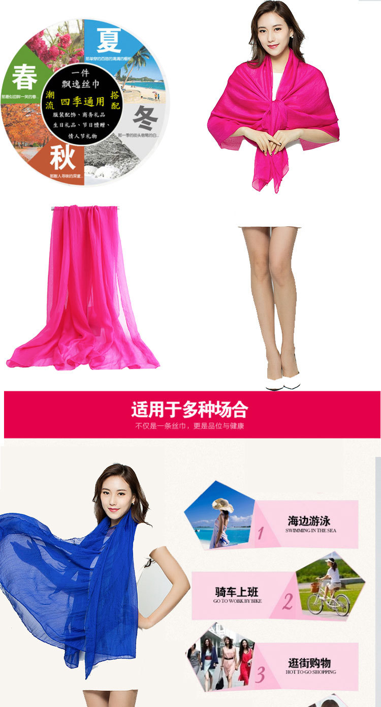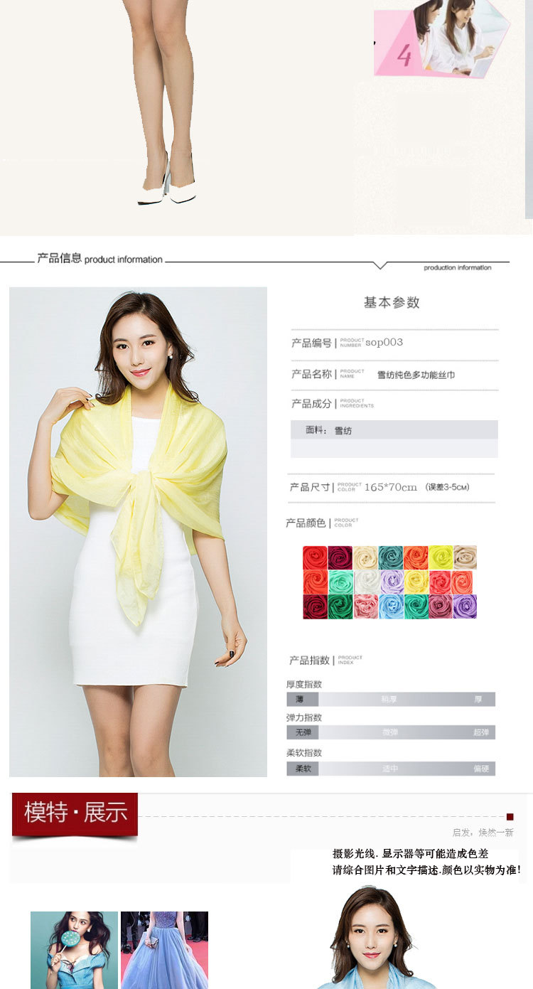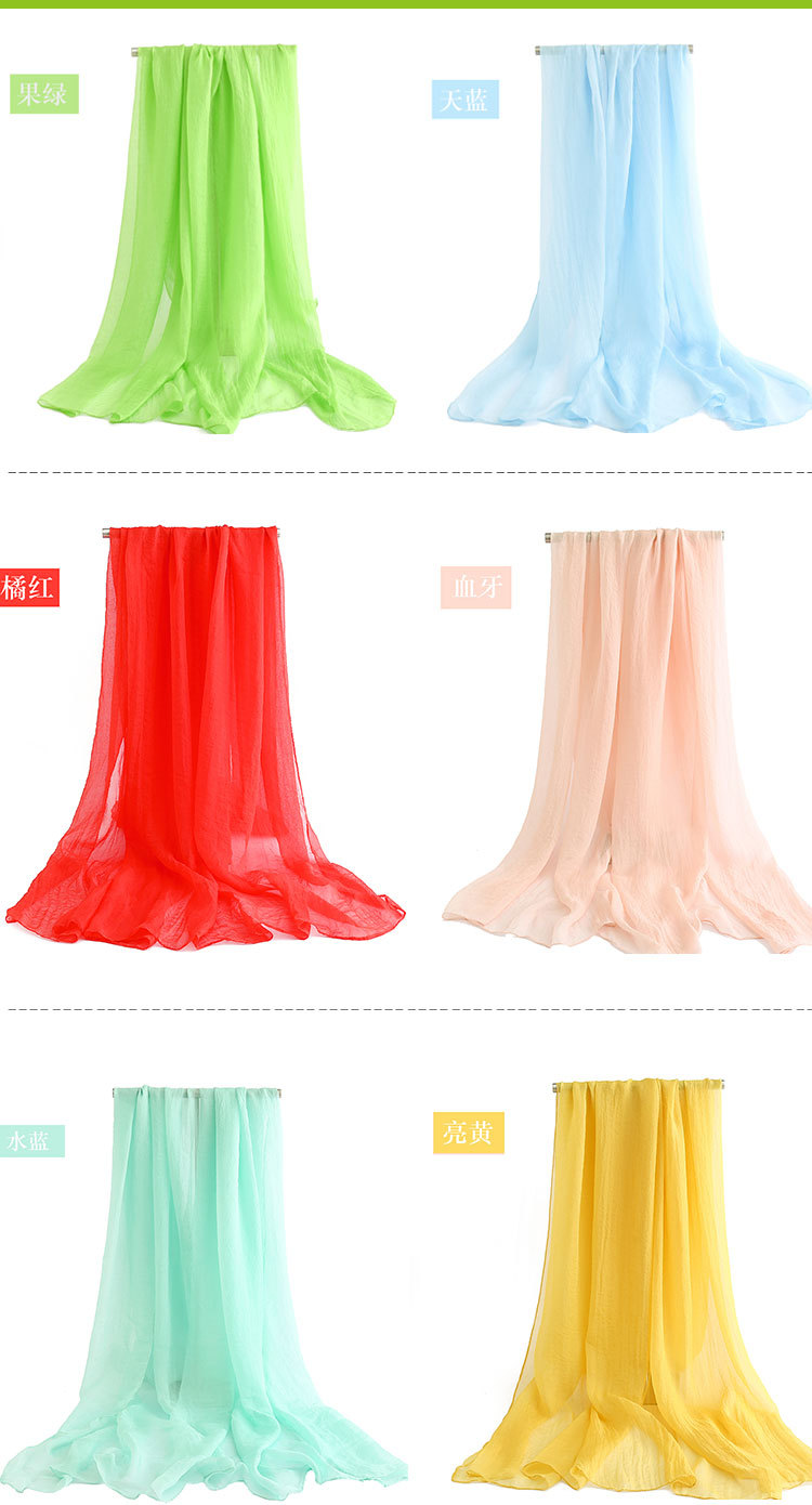 캔디 여름 신상품 자외선 차단 숄 쉬폰 인조 실크 스카프 해변 비치 타월 단색 스카프 도매스토어 가기