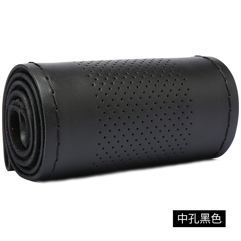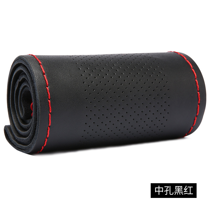 4 계절을위한 가죽 핸드 스티치 스티어링 휠 커버 유니버설 소가죽 자동차 핸들 커버