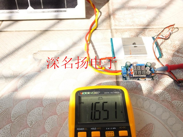 MPPT值调至太阳能板Z大功率点时的充电电流1.651A,提升近一倍的充电电流,效果相当明显。