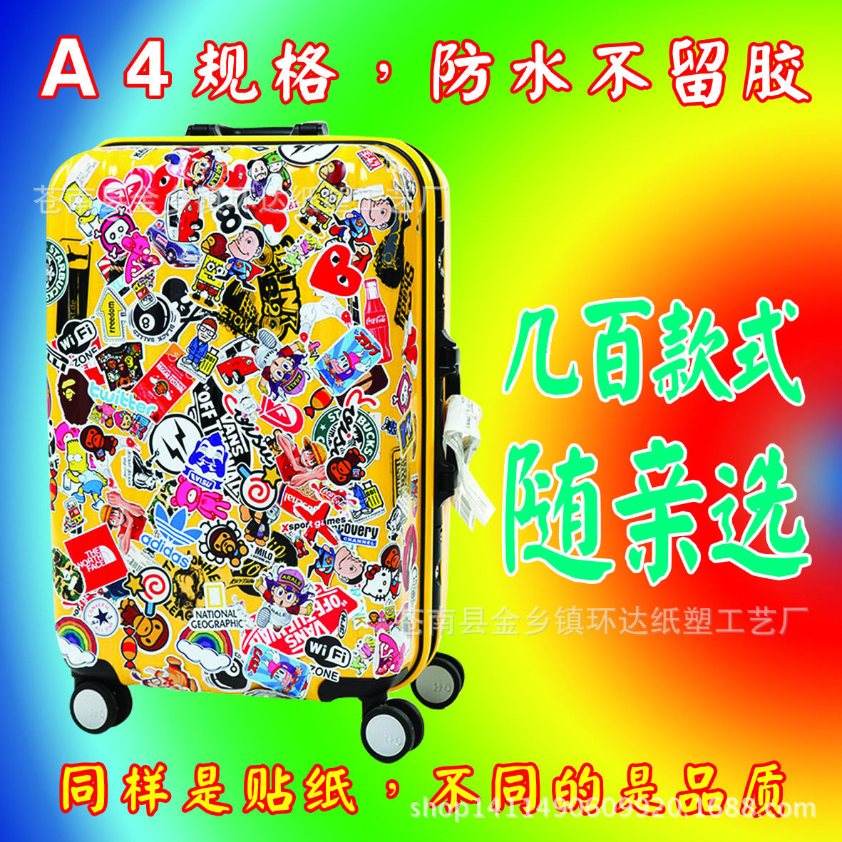 本款为PVC贴纸,防水,不留胶。欢迎批发选购。