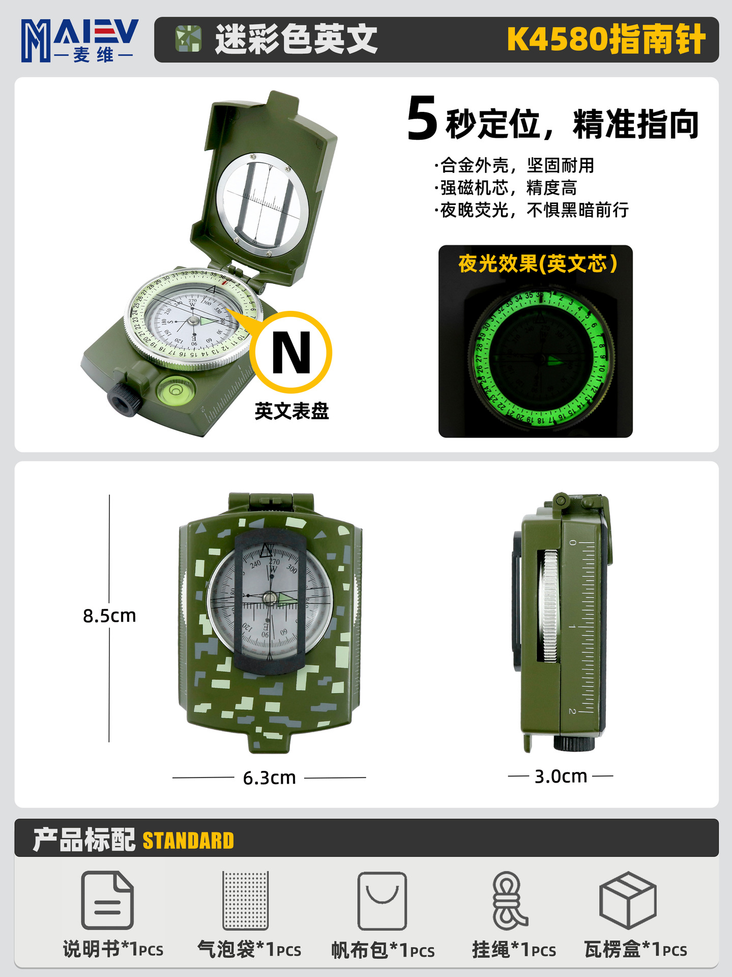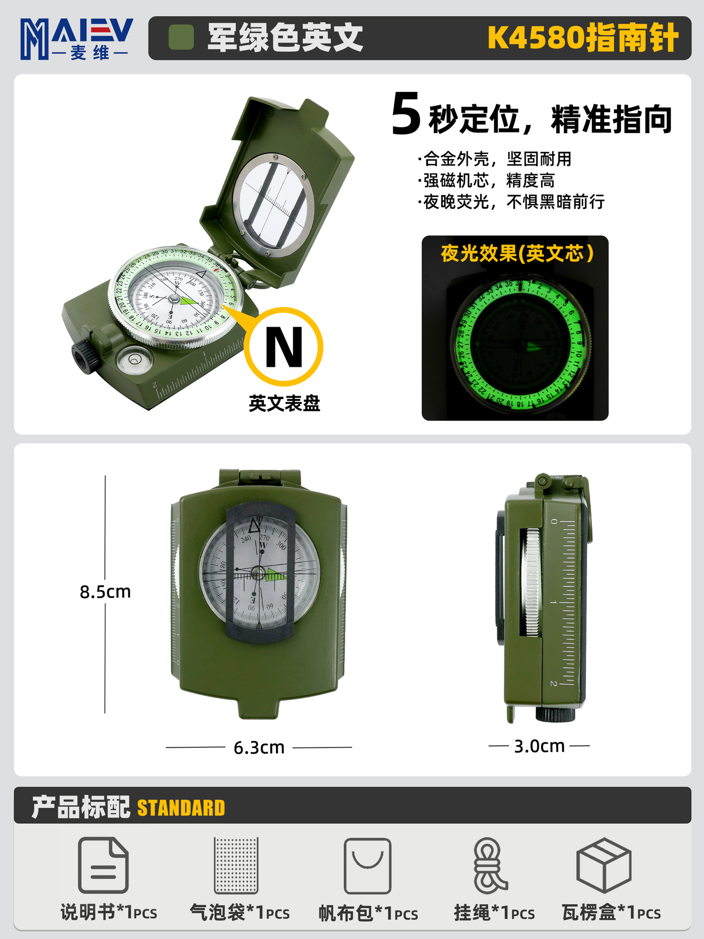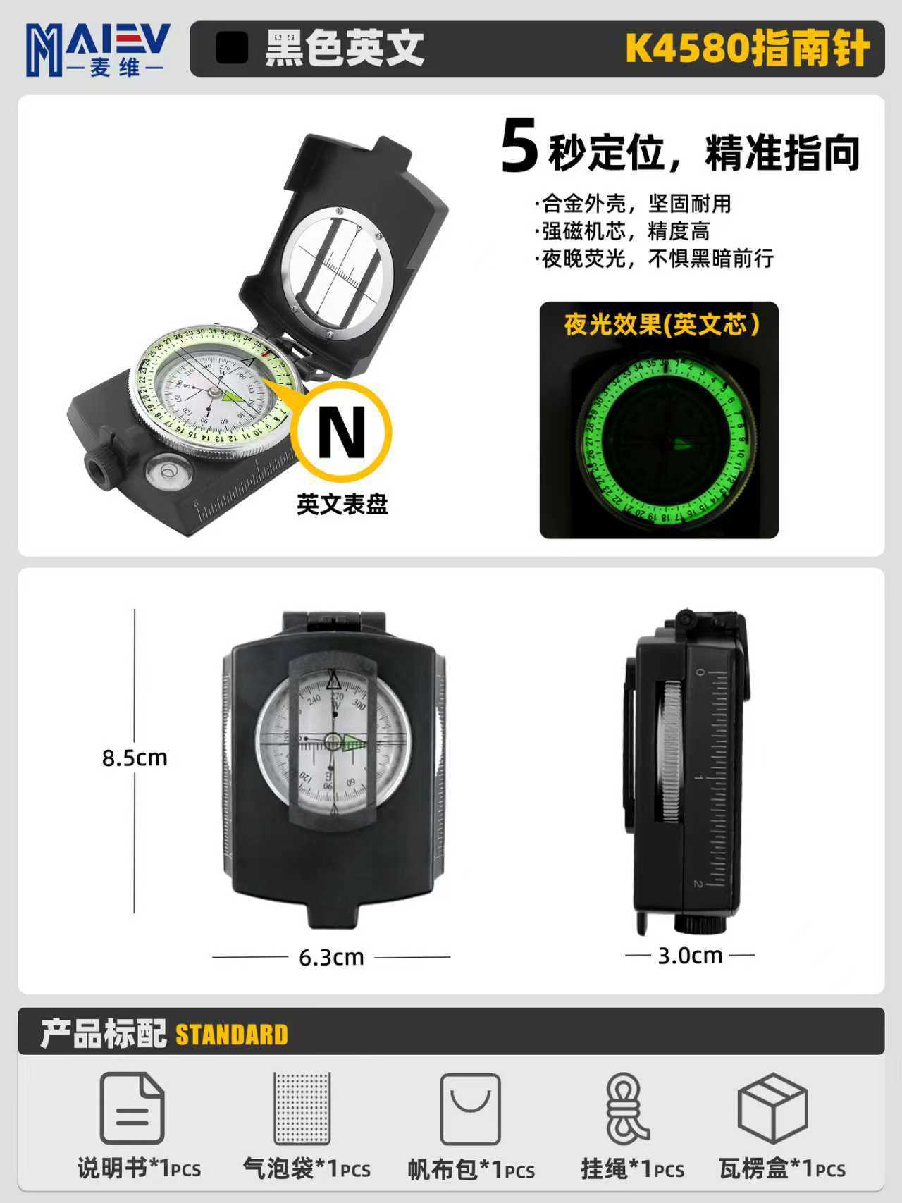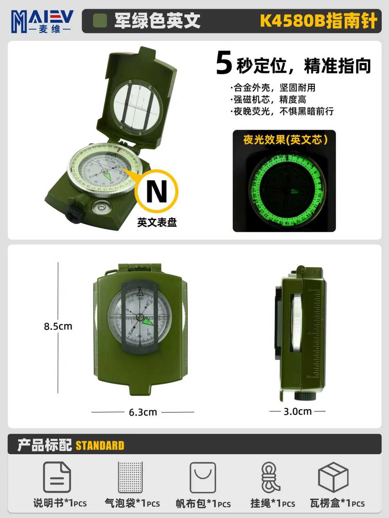 소스 공장 K4580 고정밀 미국 다기능 나침반 나침반 야외 캠핑 빛나는 나침반