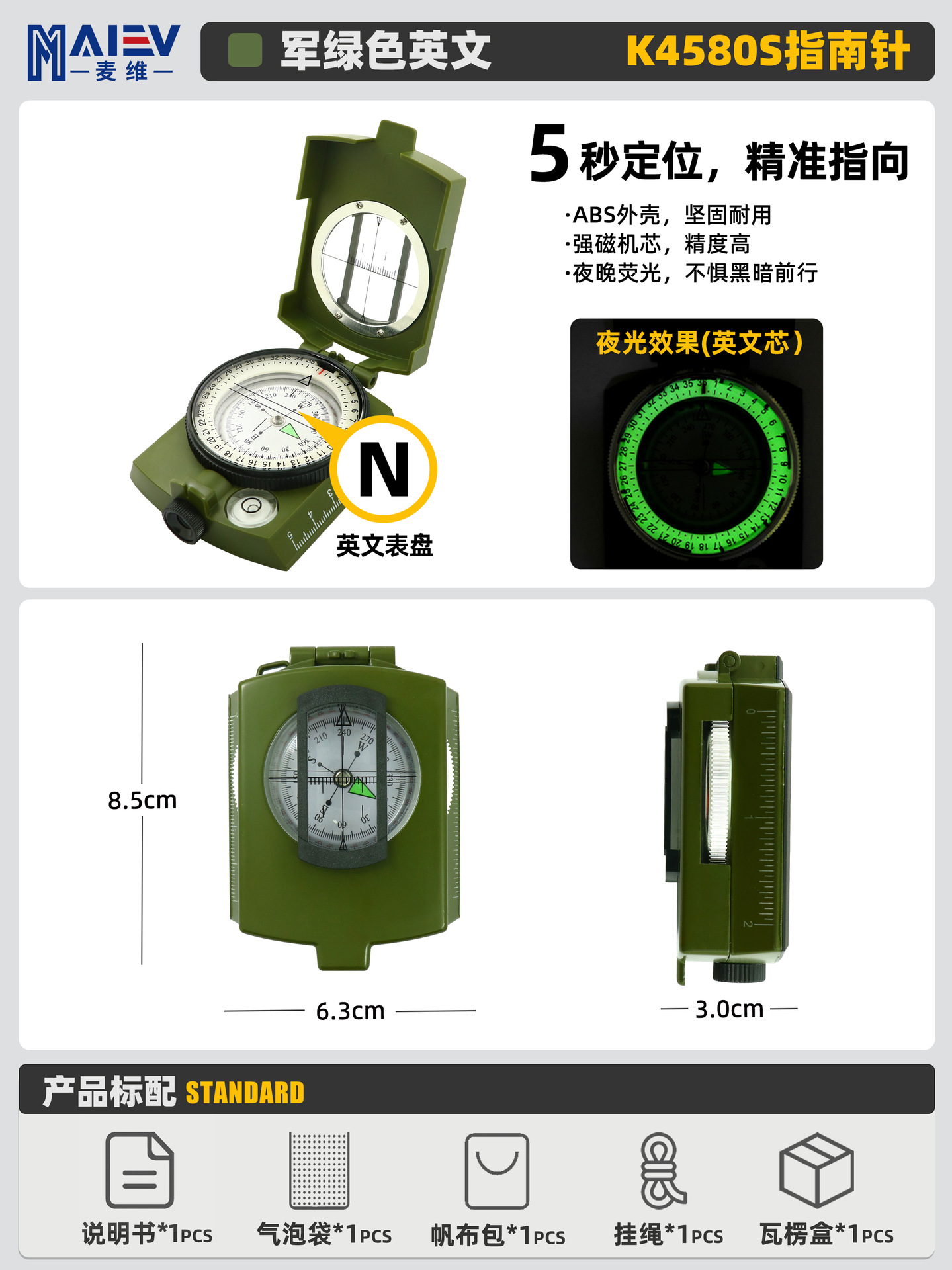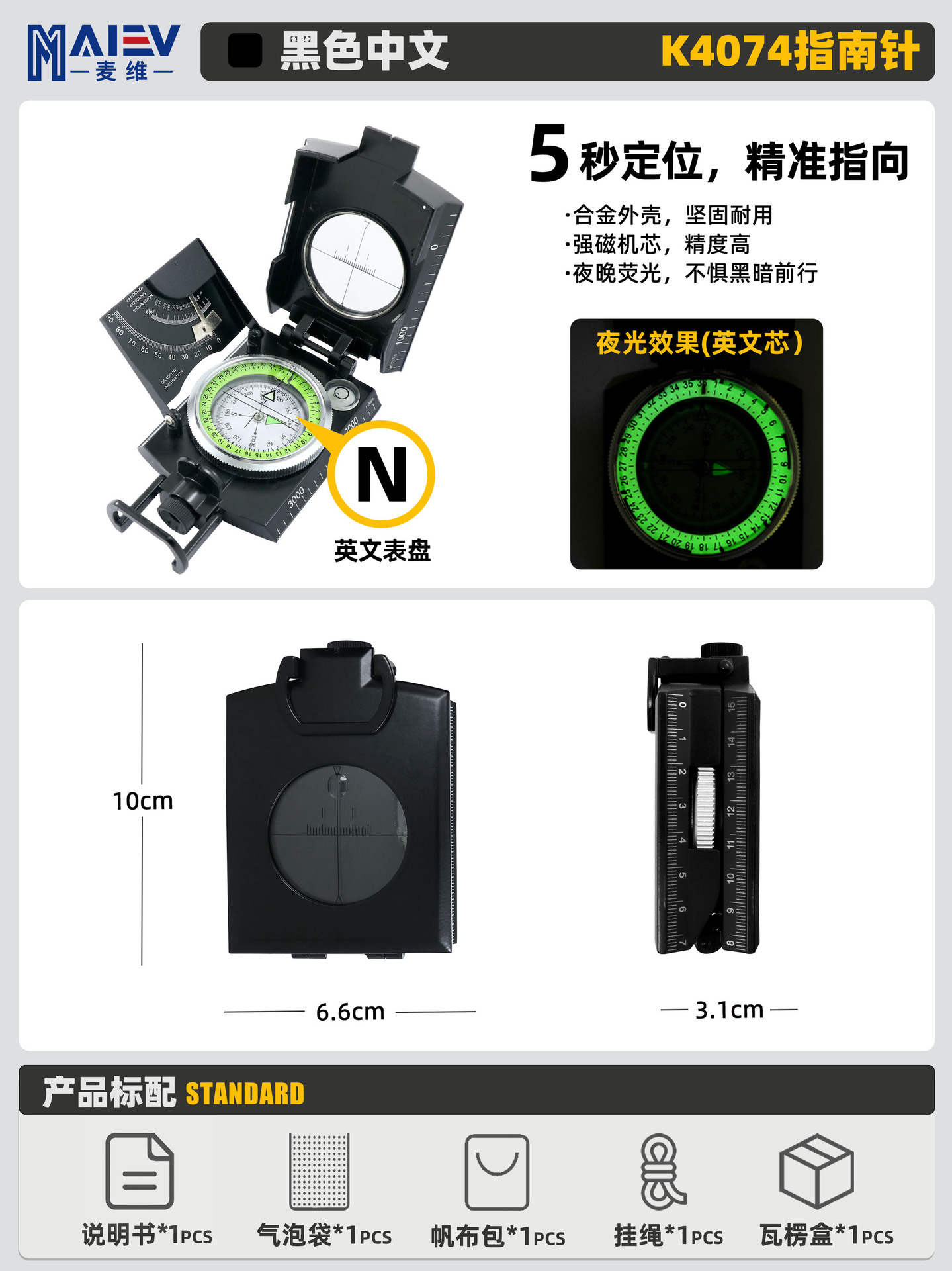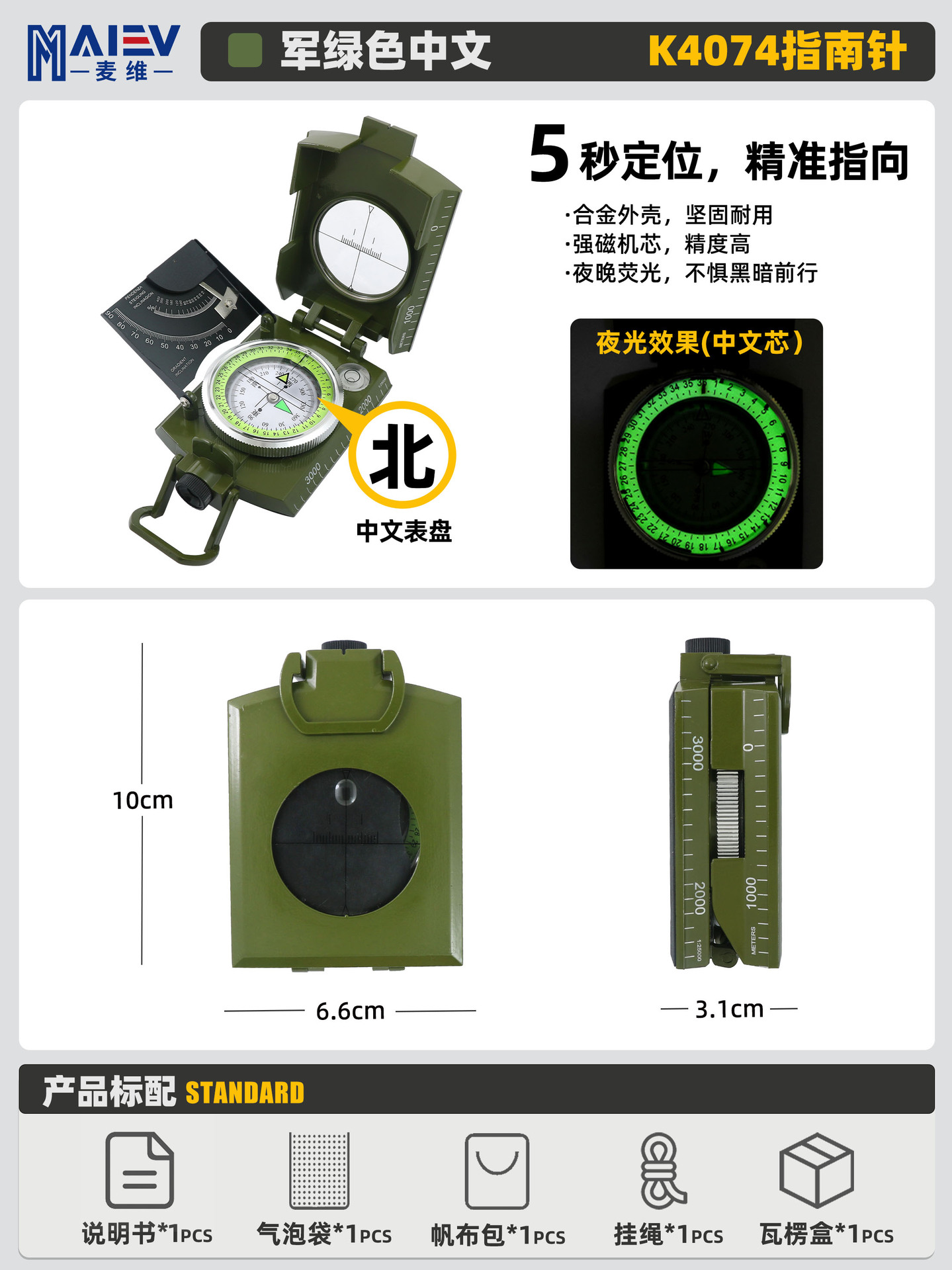 소스 공장 K4580 고정밀 미국 다기능 나침반 나침반 야외 캠핑 빛나는 나침반