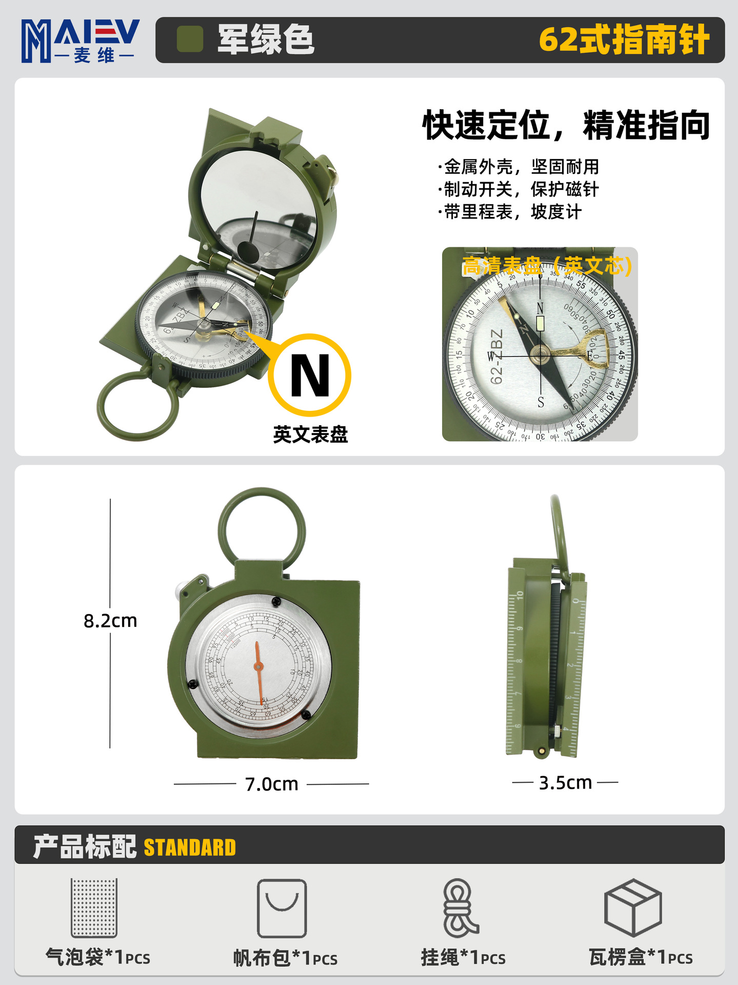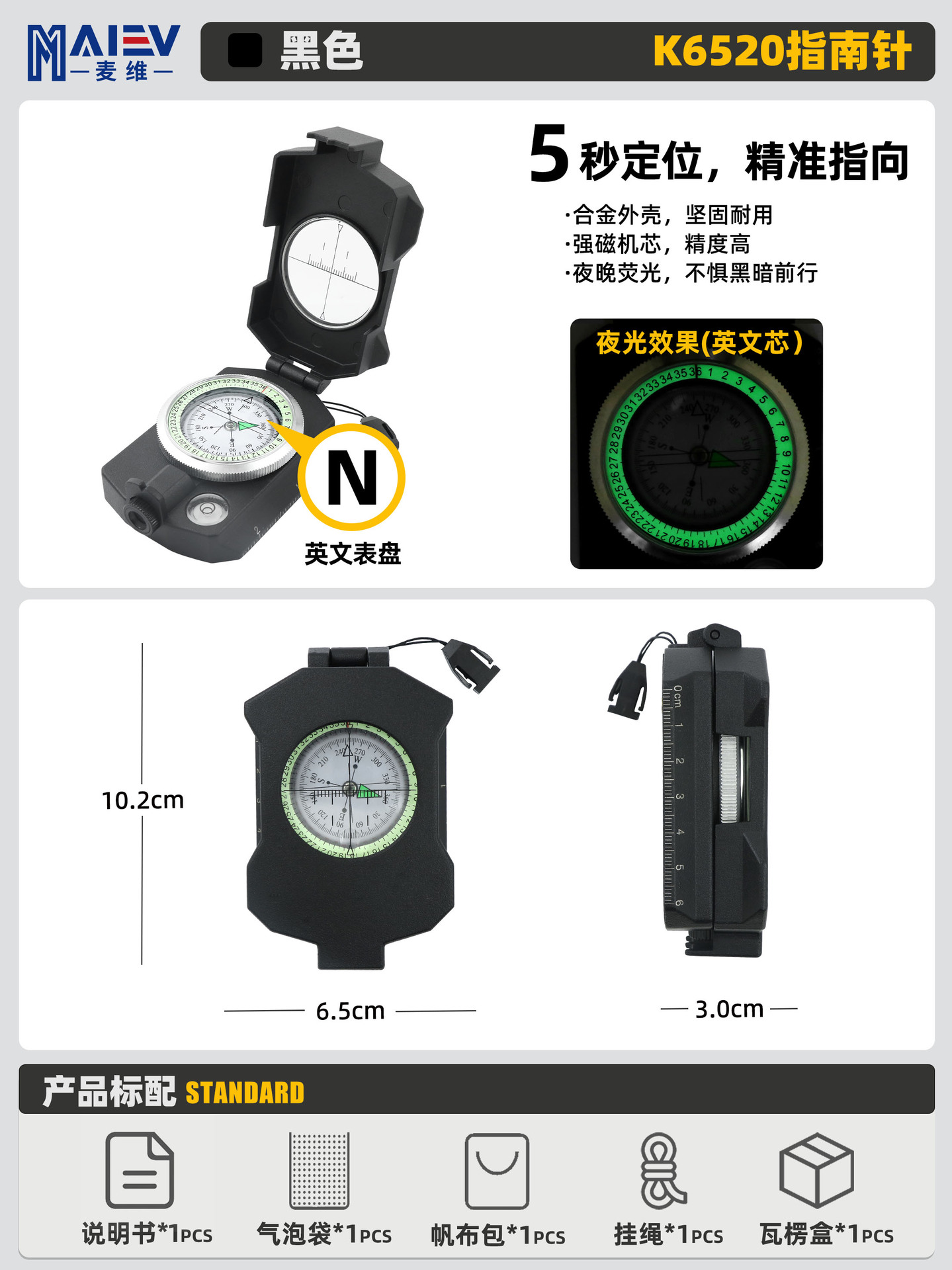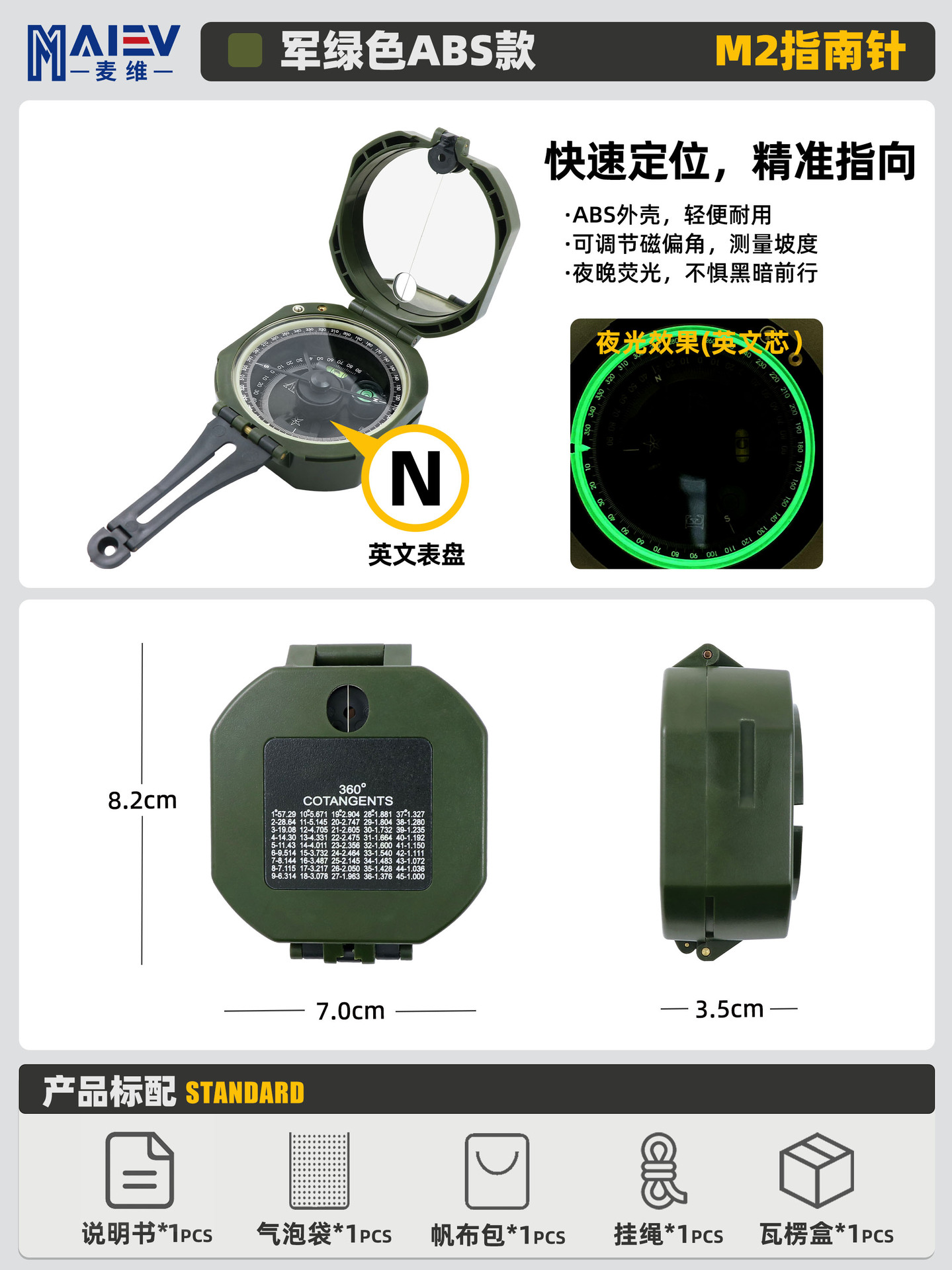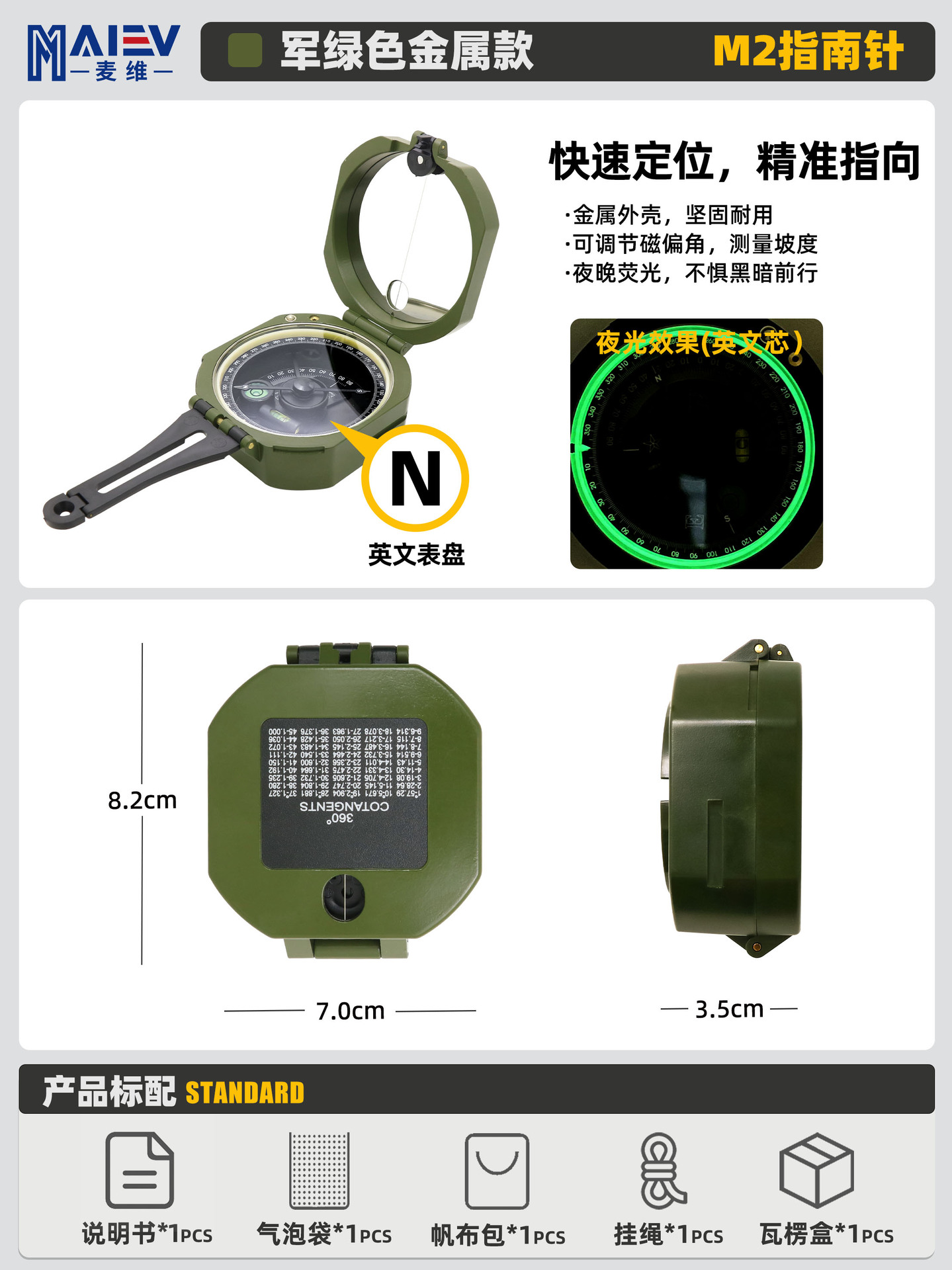 소스 공장 K4580 고정밀 미국 다기능 나침반 나침반 야외 캠핑 빛나는 나침반