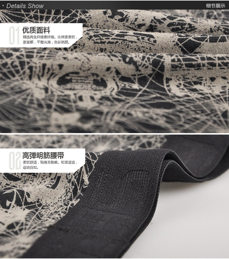 세븐울프스 정품 남성 속옷 재생섬유 사각팬티 프린트 섹시 U자형 남성용 반바지 03429 대나무 섬유