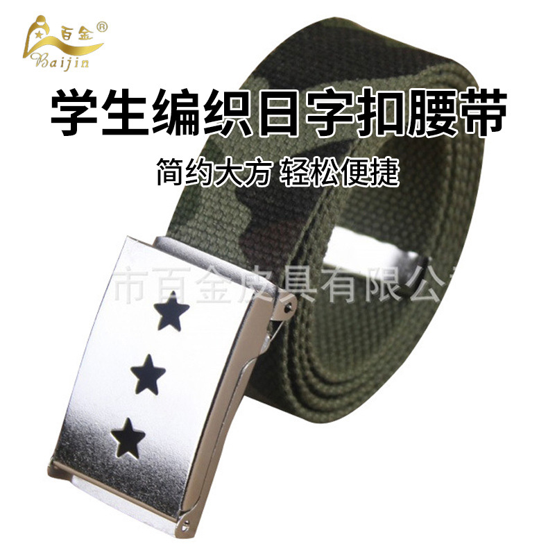 국경을 넘는 인기 상품 어린이 플립버튼 직조 벨트, 오성급 훈련용 위장 캔버스 학생용 직조 일자형 벨트