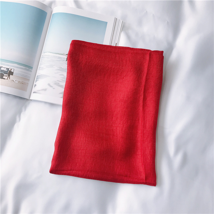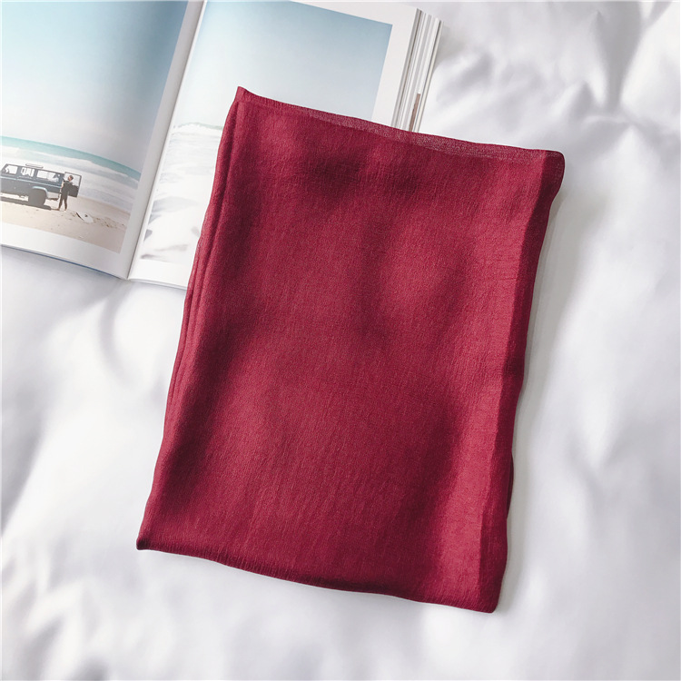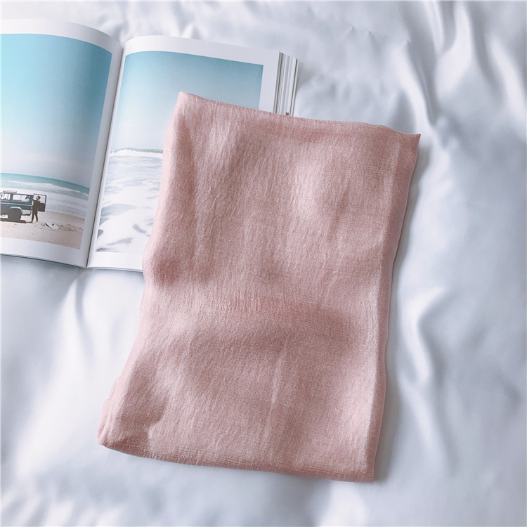공장 재고 네덜란드 린넨 단색 실크 스카프 비치 타올 여성 유럽과 미국 간단한 소프트 대형 실크 스카프 대형 숄스토어 가기
