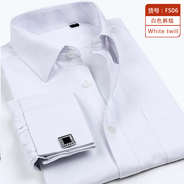 봄여름 해외 무역 이베이 알리익스프레스 루즈핏 비즈니스 남성용 프렌치 커프스 단추 셔츠 남성용 흰색 셔츠 이브닝웨어 남성복