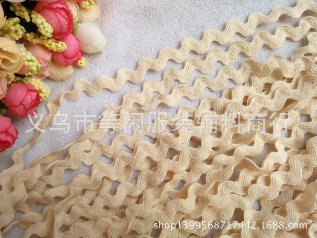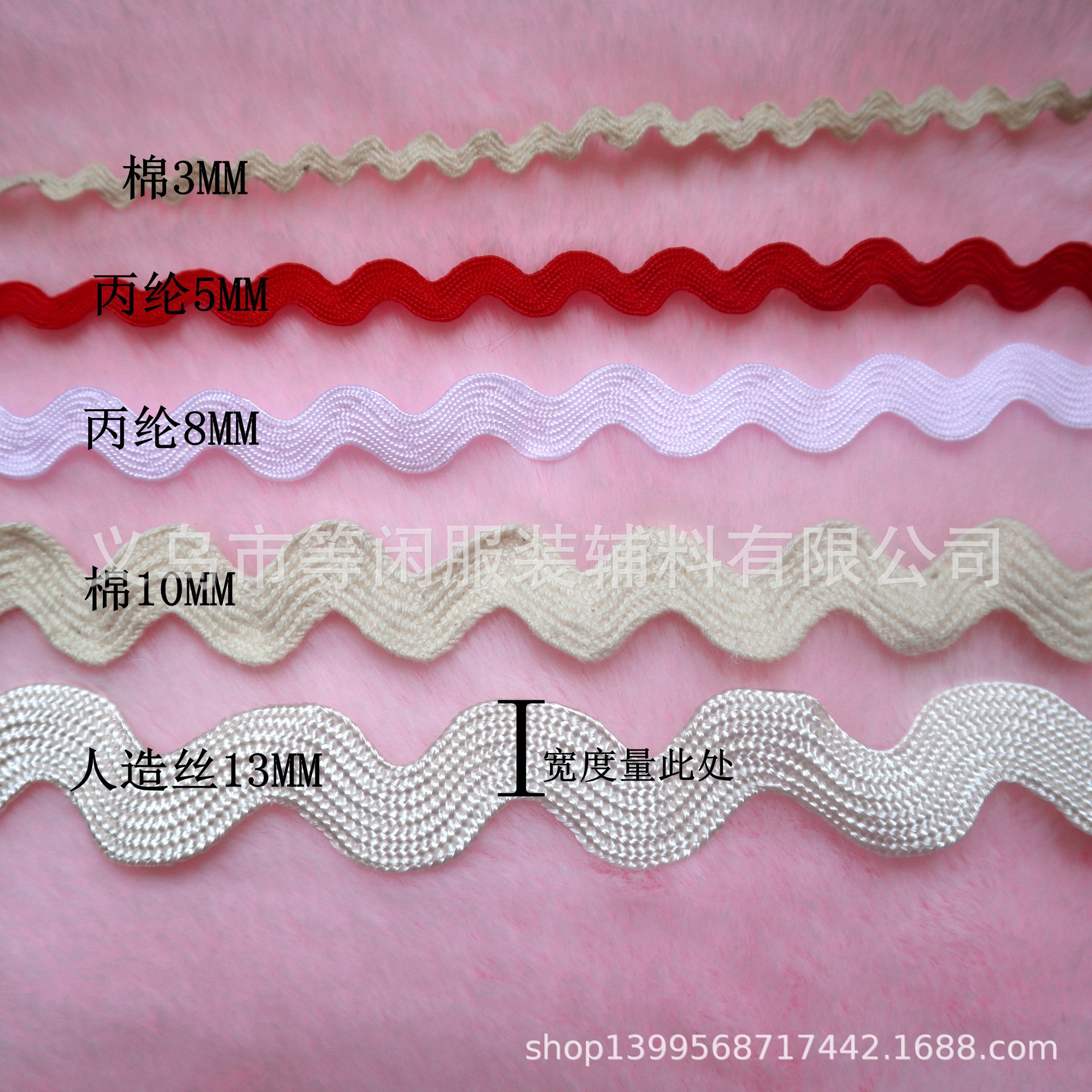 本公司专业生产销售各种材质波浪带/水浪边,可按客户要求定染各种颜色,有丙纶、棉、人造丝三种材质,各种规格有大量现货,交货及时,价格低廉,适用于各类服装辅料,床上用品、服装、家纺、童鞋、帽子、袜子、玩具、窗帘、门帘、灯饰、箱包、工艺品、玩具等,我们始终秉持着“质量优 价格 交货最及时”的原则进行生产经营,欢迎新老客户前来选购!