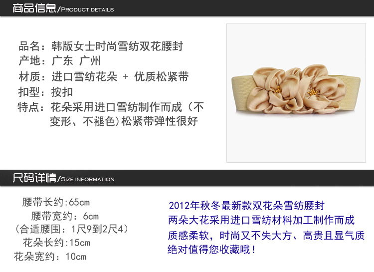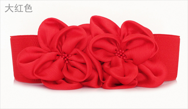 도매 한국 스타일 다용도 쉬폰 큰 꽃 탄성 벨트 패션 탄성 활 넓은 허리 커버 스커트 액세서리