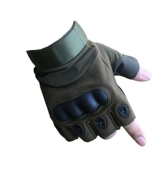 • 소프트 쉘 반손가락 군용 장갑 녹색